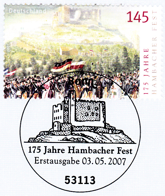 Die Sonderpostkarte für das Winterhilfswerk P 254 Bild 141 bildet auf der Bildseite das Hambacher Schloss ab.