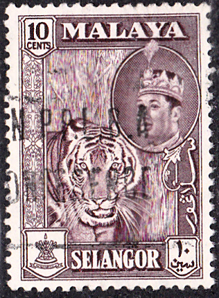 Auf dieser Marke aus der Föderation Malaya Selangor (MiNr 95) wird Sultan Tengku Abdul Aziz Shah ibn Sultan Hissamuddin Alam Shah mit seiner Kopfbedeckung gezeigt.
