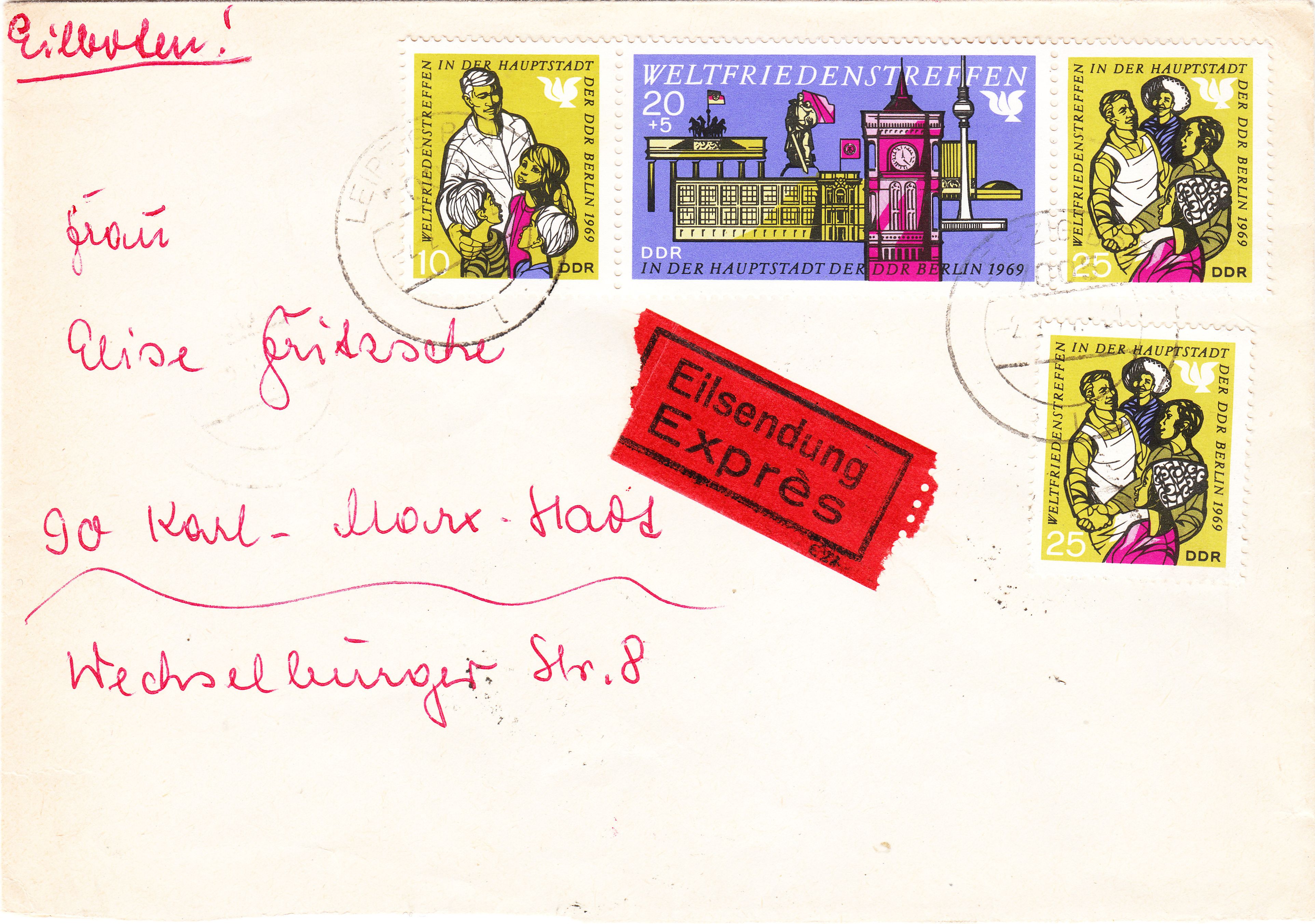 Hier folgt ein weiterer Brief per Eilzustellung innerhalb der DDR gelaufen von Leipzig nach Karl-Marx-Stadt: