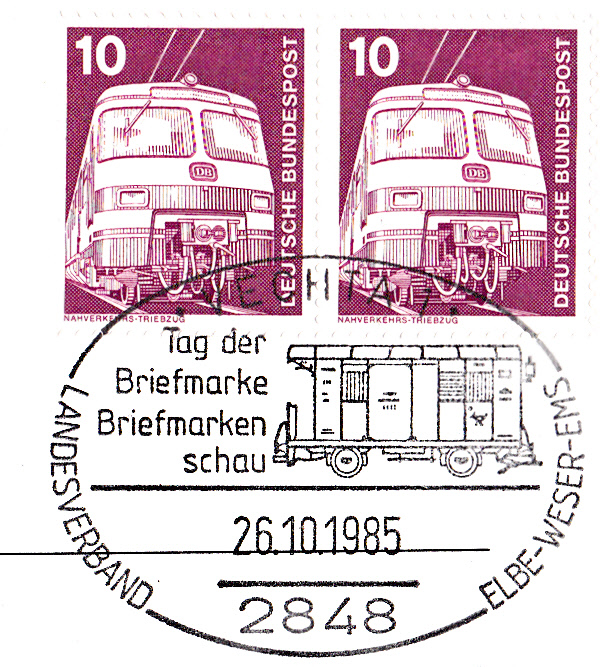 Auch dieser Sonderstempel vom 26.10.1985 aus Vechta zeiht einen Bahnpostwagen.