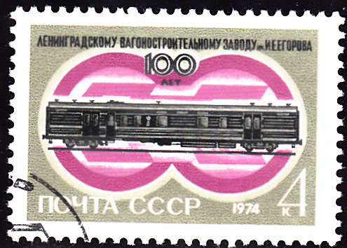 Auf dieser Marke der Sowjetunion (MiNr 4246) zum Thema "100 Jahre Waggonfabrik Leningrad" ist ein Bahnpostwagen zu sehen.
