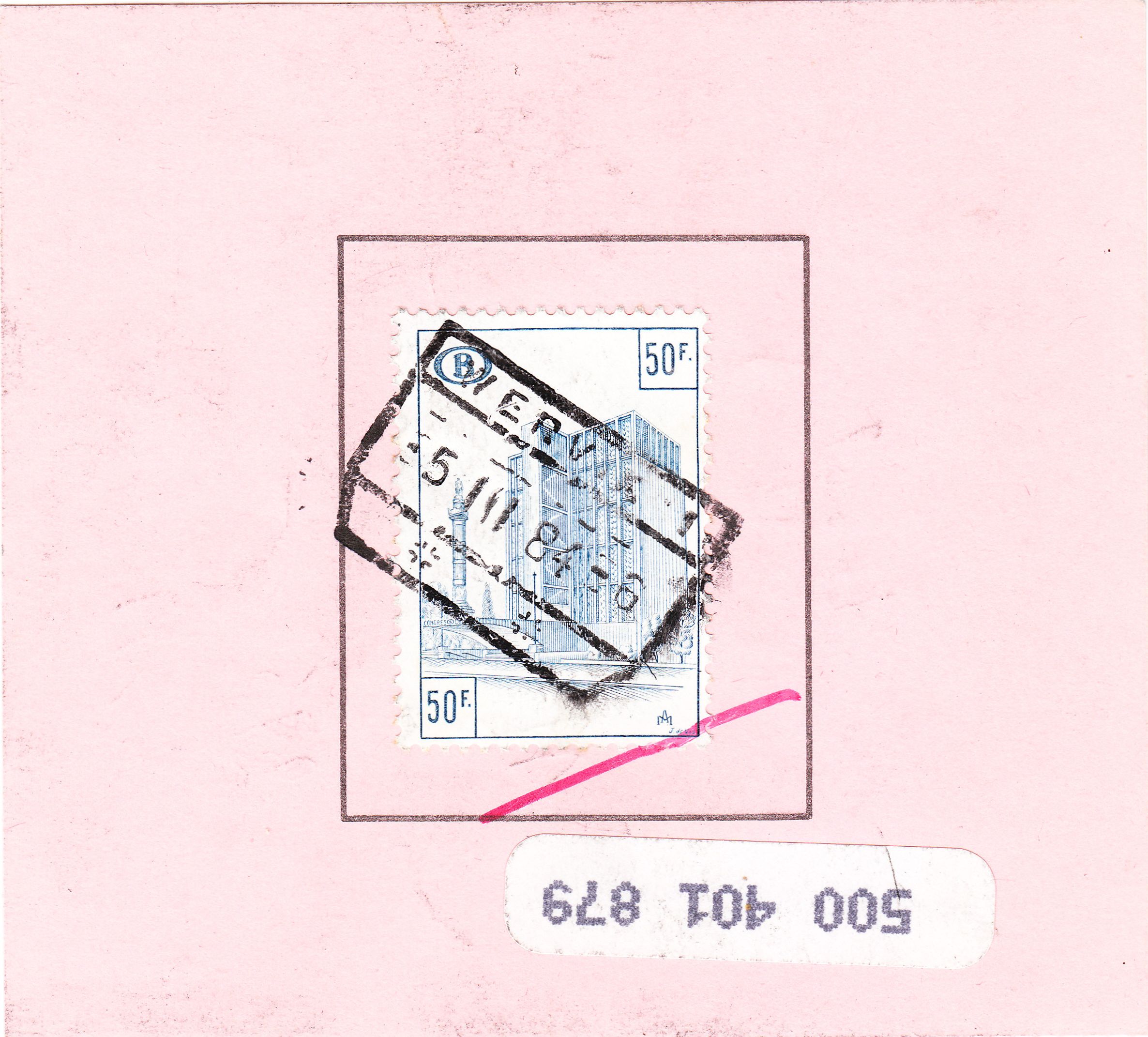 Hier eine EF der belgischen Eisenbahnpaketmarke MiNr. 351 zx auf einer Berechtigungskarte der NMBS aus März 1984: