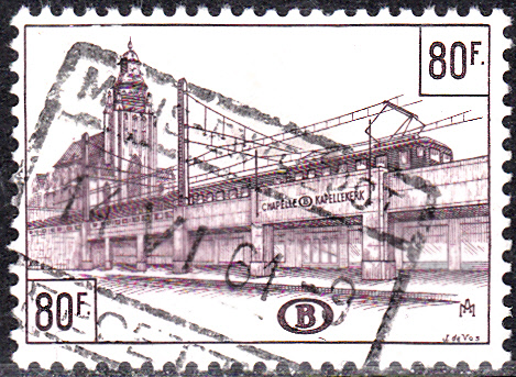 Auf dieser 1964 erschienenen Marke zu 28 Francs (MiNr 58) ist eine Abbildung des Bahnhofes Gent-St. Pieters zu sehen. Sie wurde 1966 mit einem grünem Bdr.-Aufdruck des neuen Wertes (35 Francs) versehen und wird mit diesem Aufdruck unter der MiNr 59 geführt.