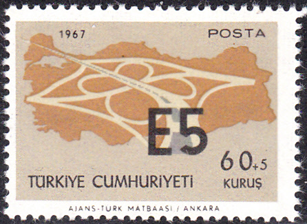 In einer Ausgabe "Europastraße E 5" ist in der Türkei diese Marke (MiNr 2058) mit der Abbildung eines "Autobahn-Kleeblattes" erschienen.