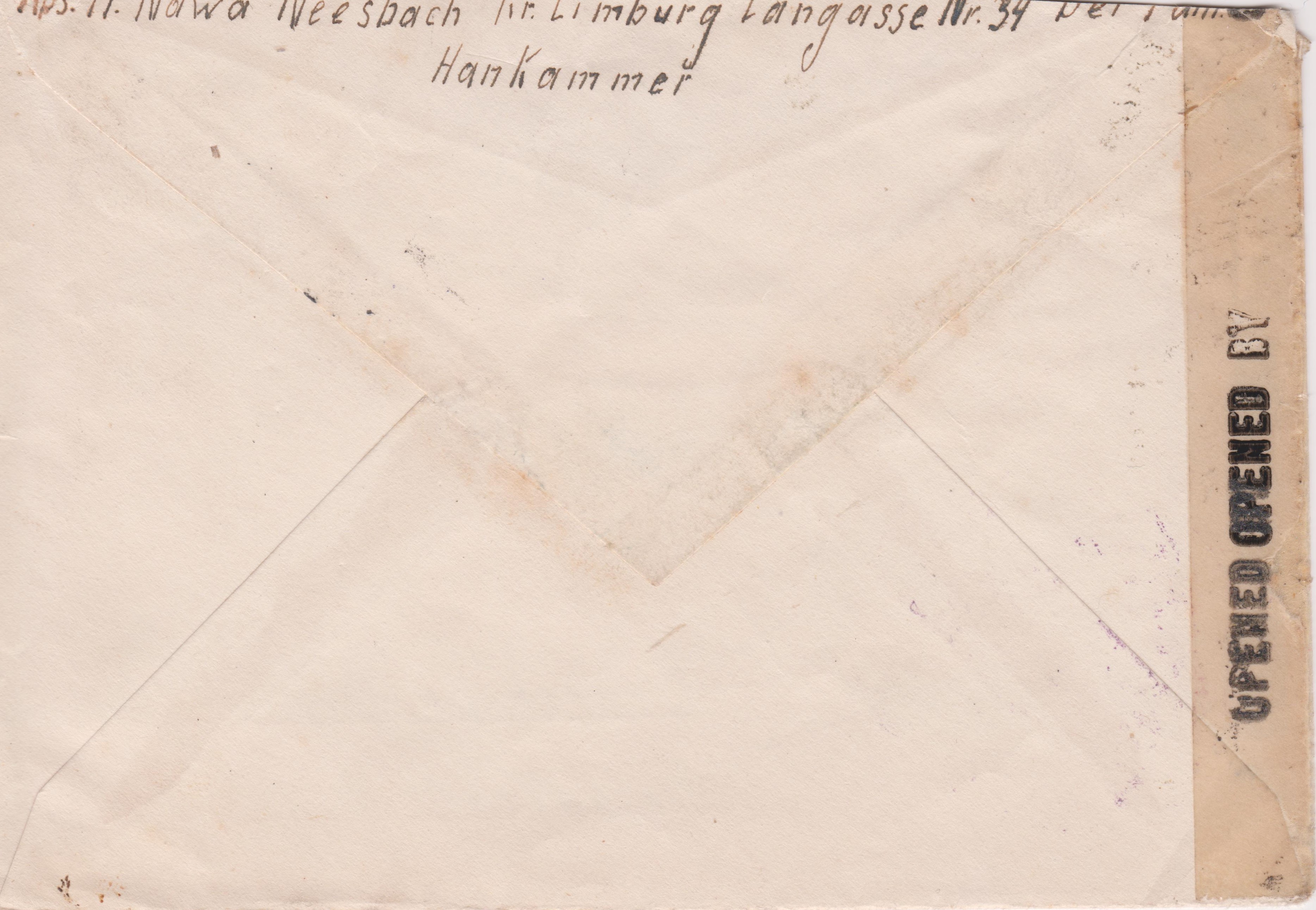 Der Brief lief durch die amerikanische Zensur, wo er linksseitig geöffnet und nach erfolgter Prüfung mit einem Verschlußstreifen wieder verschlossen wurde, was ein Prüferstempel "MILITARY CENSORSHIP CIVIL MAILS 10341" dokumentiert.