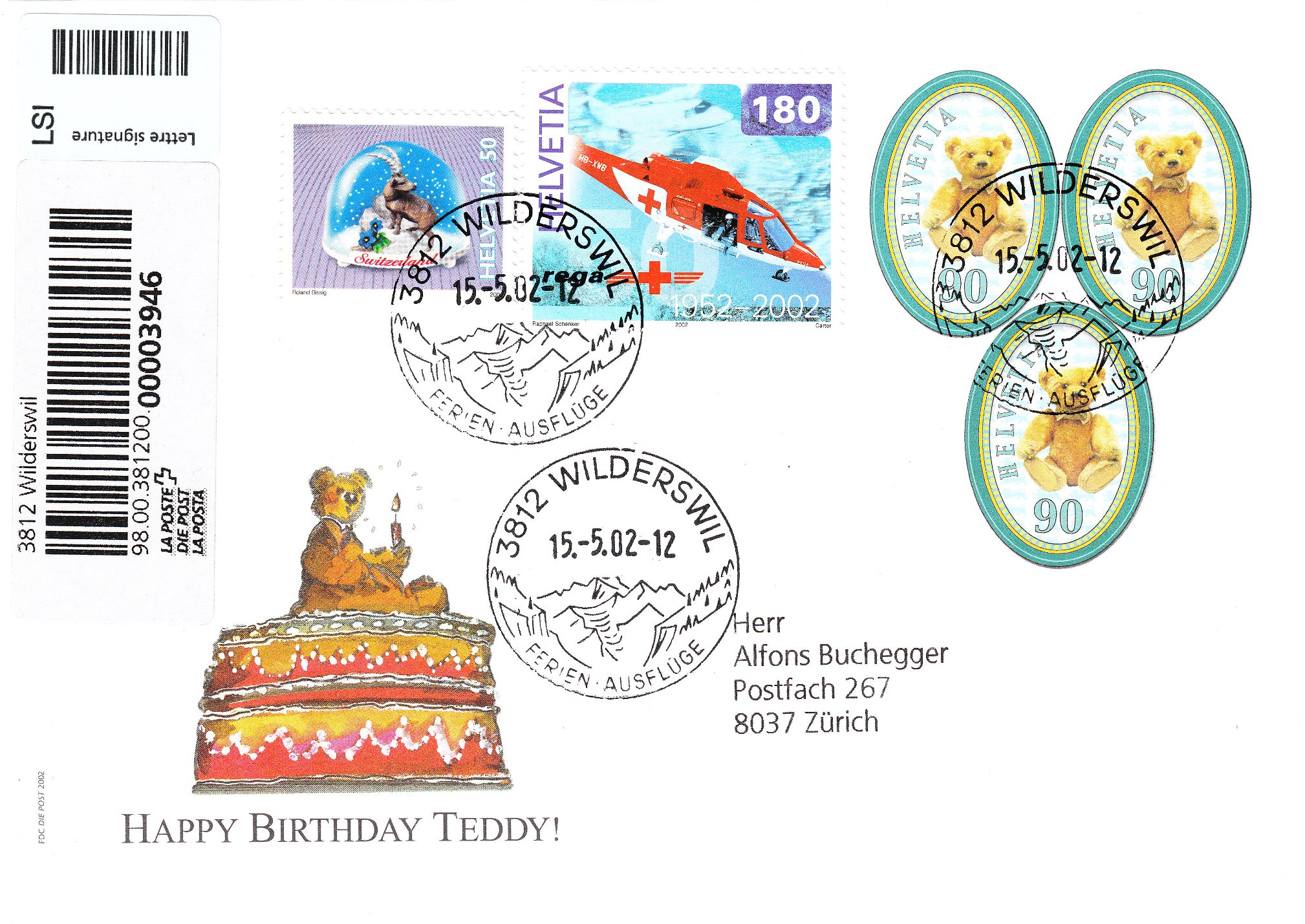 Am 06.06.2002 erschien diese Briefmarke mit einem Teddybär: