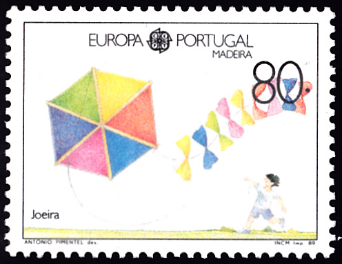 In Portugal Madeira erschien eine Europamarken 1989 (MiNr 125 I) zum Gemeinschaftsthema "Kinderspiele" mit einem Jungen beim Drachen steigen lassen.