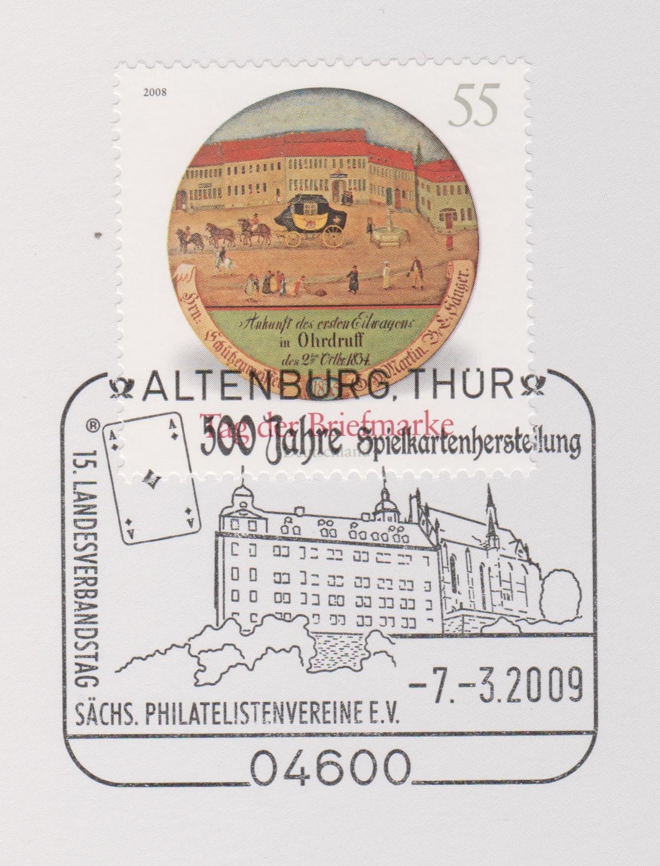 Dieser Sonderstempel aus "04600 ALTENBURG" in Thüringen erschien aus Anlaß "500 Jahre Spielkartenherstellung" und zeigt eine Spielkarte, ein Karo-As: