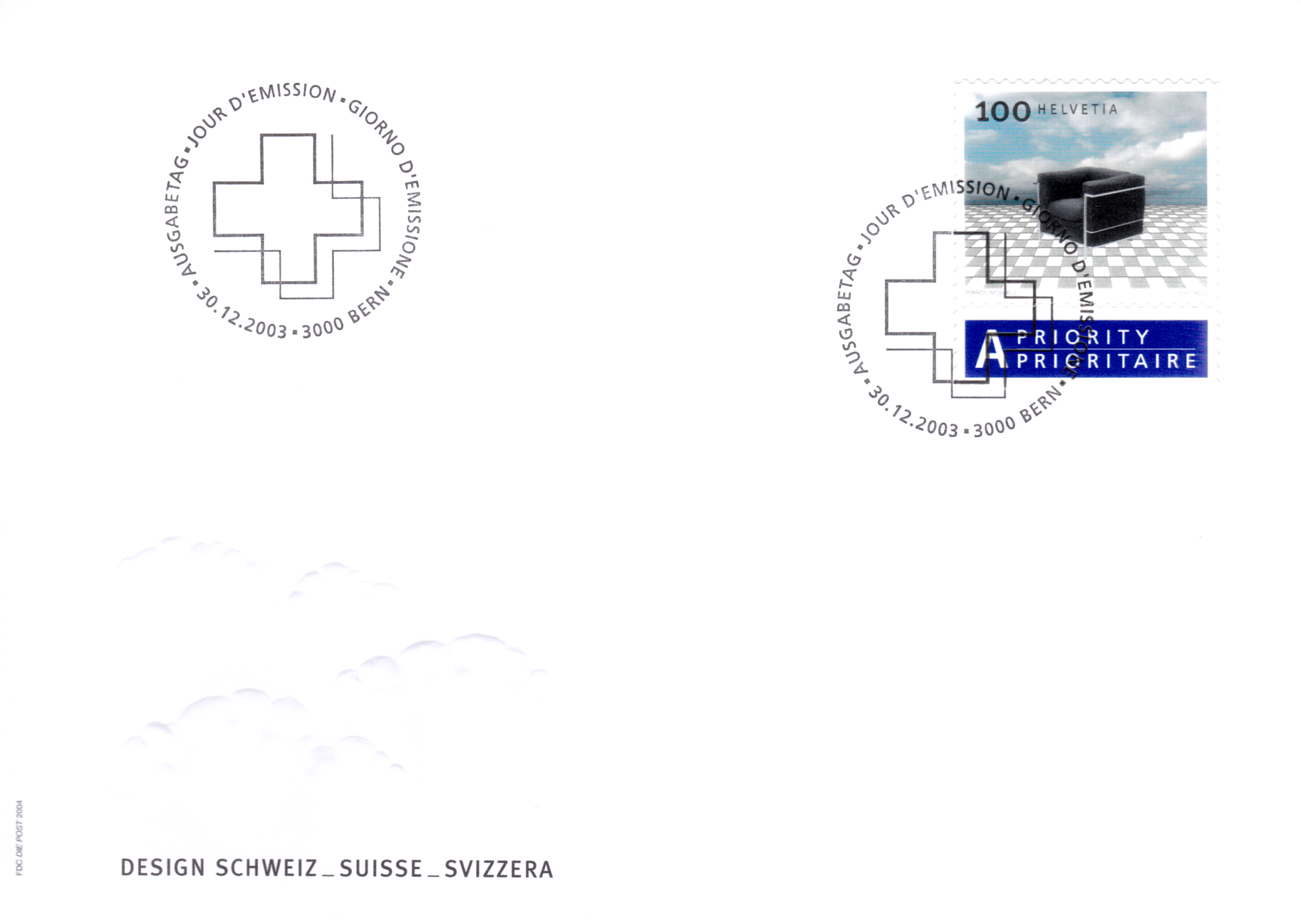 FDC der Post der Schweiz mit der Marke (MiNr 1863) mit dem Sessel "Le auteuil Grand Confort".