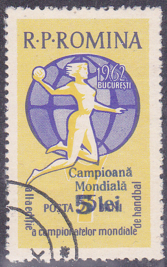 Zum Gewinn des Handball-Weltmeisterschaft der Damen 1961 durch die rumänische Nationalmannschaft erschien in Rumänien diese Marke (MiNr 2094) mit dem Aufdruck "Campioană / Mondială" und der neuen Wertstufe auf die bereits gezeigte Marke MiNr 2047.