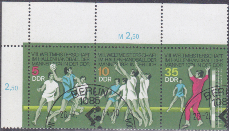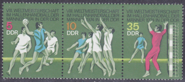 In der DDR ist dazu diese Marke (MiNr 1928) mit einem Spieler beim Torwurf erschienen.