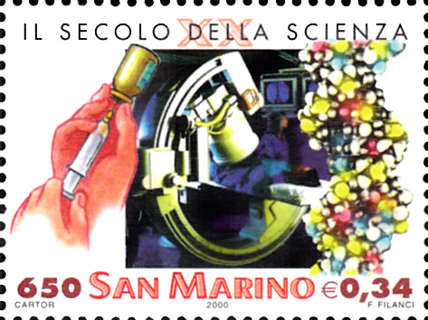 In San Marino ist in der Serie "Das zwanzigste Jahrhundert" eine Marke (MiNr 1872) zum Thema "Wissenschaft" erschienen. Die Marke zeigt ganz rechts auch eine Abbildung zum Thema DNA.