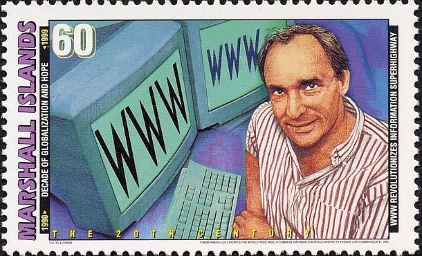 Dieses Postwertzeichen von den Marshallinseln dokumentiert die Globalisierung durch das www: