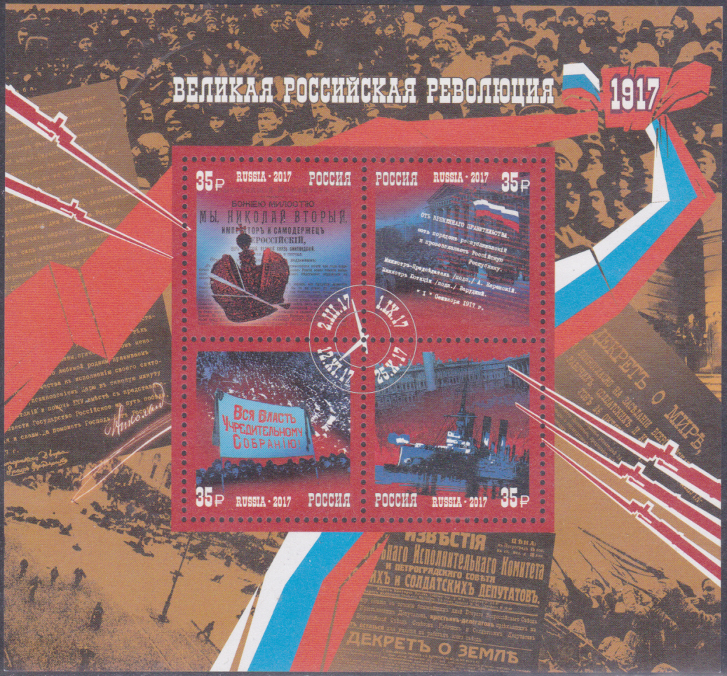Dies ist Thema der vierten und letzten Marke (MiNr 2421): sie zeigt zur Oktoberrevolution den Sturm auf das Winterpalais und den Kreuzer Aurora.