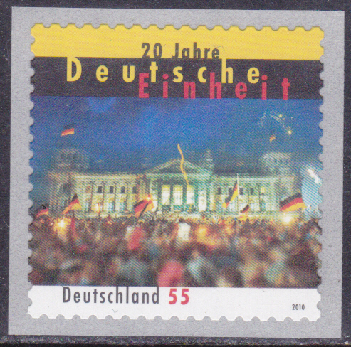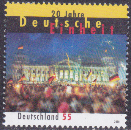 Zum Jubiläum "20 Jahre Deutsche Einheit" erschien bei der Deutschen Post eine Marke (MiNr 2821) mit einem Bild zur Feier zur Deutschen Einheit in Berlin.