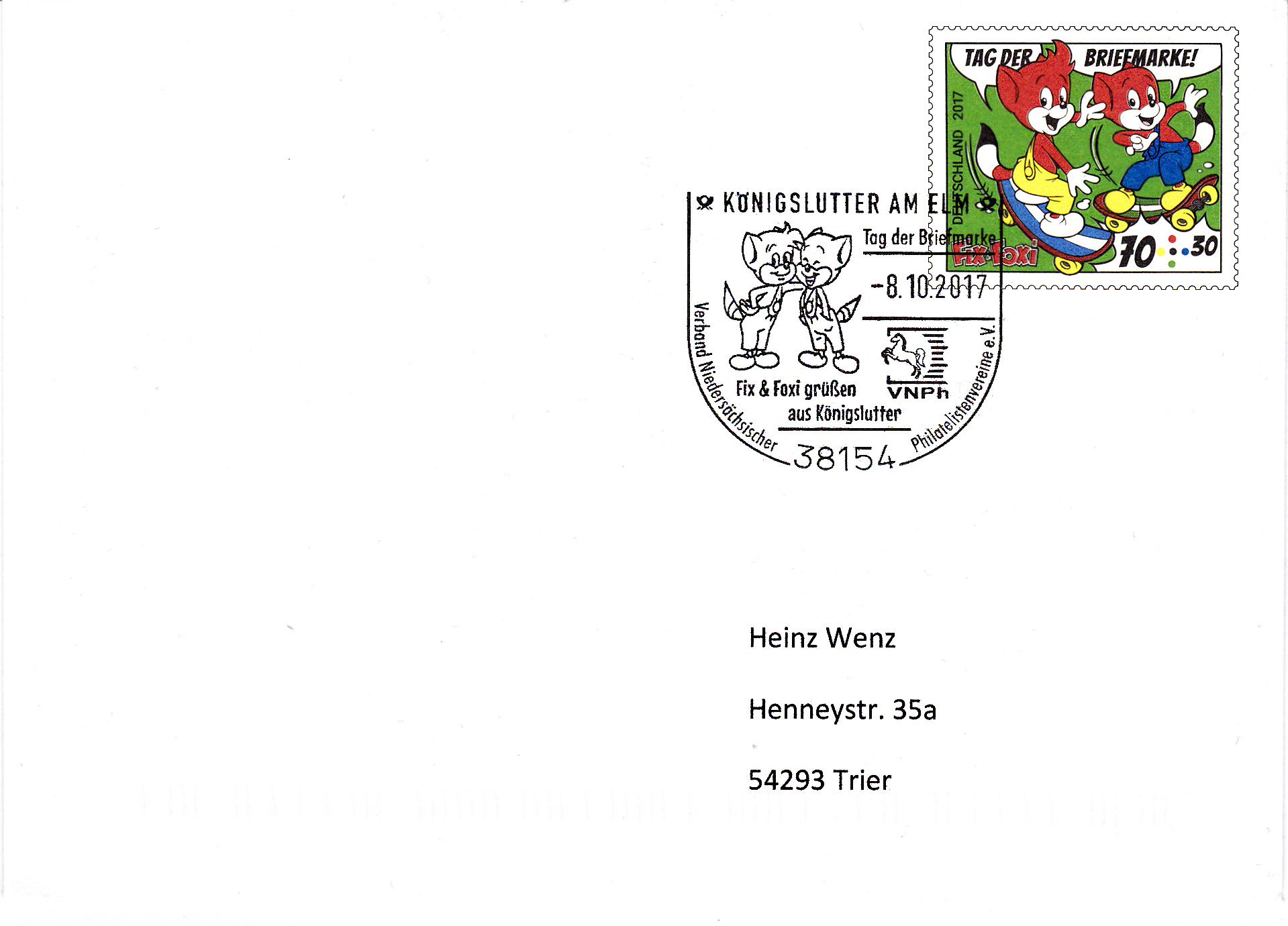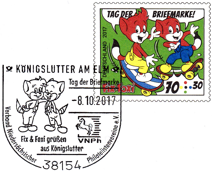 In Königslutter gab es neben dem bereits gezeigten Sonderstempel mit "Lupo" noch einen zweiten Sonderstempel mit den beiden Comic-Figuren Fix und Foxi.