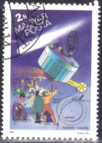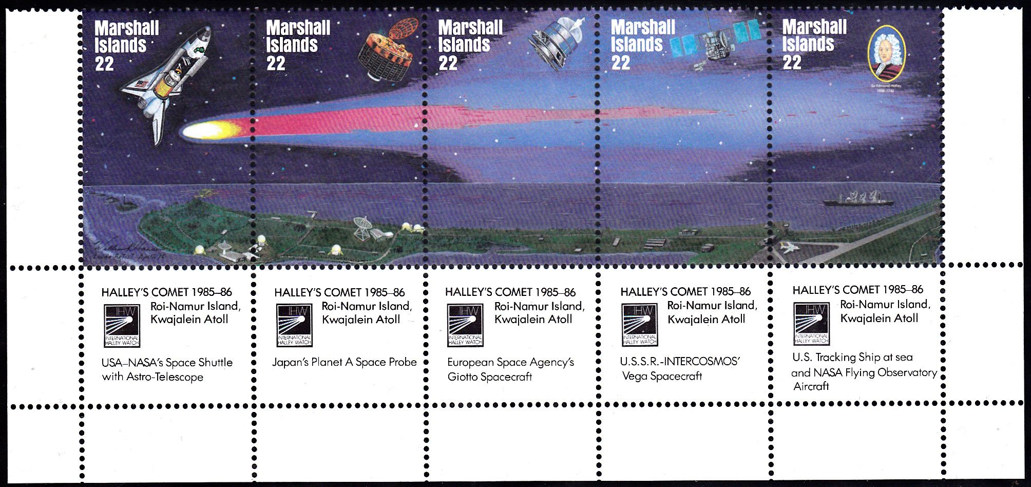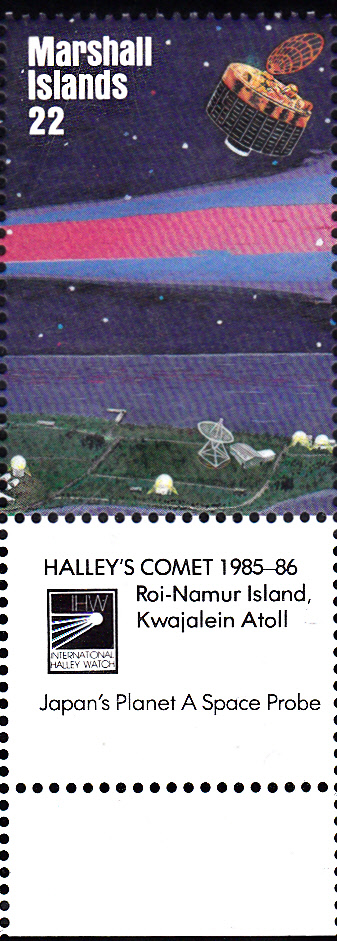 Auf einer Marke der Marshall-Inseln (MiNr 63) ist die Raumsonde Suisei (Planet-A)zu sehen.