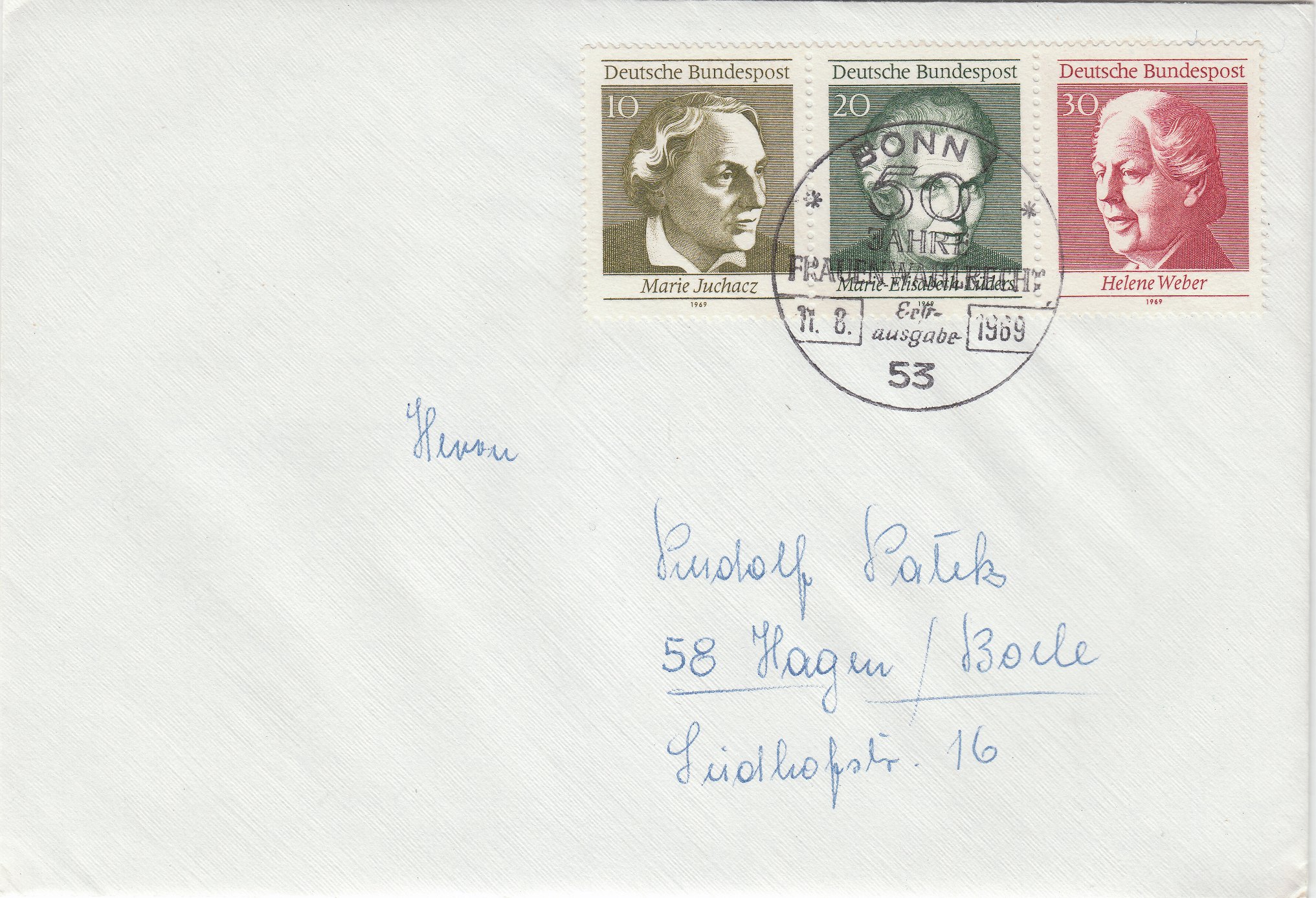Die dem Zusammendruck entsprechende Portostufe von 60 Pf war am Erstausgabetag nur als Briefdrucksache mit einem Gewicht von 101 bis 250 g möglich.