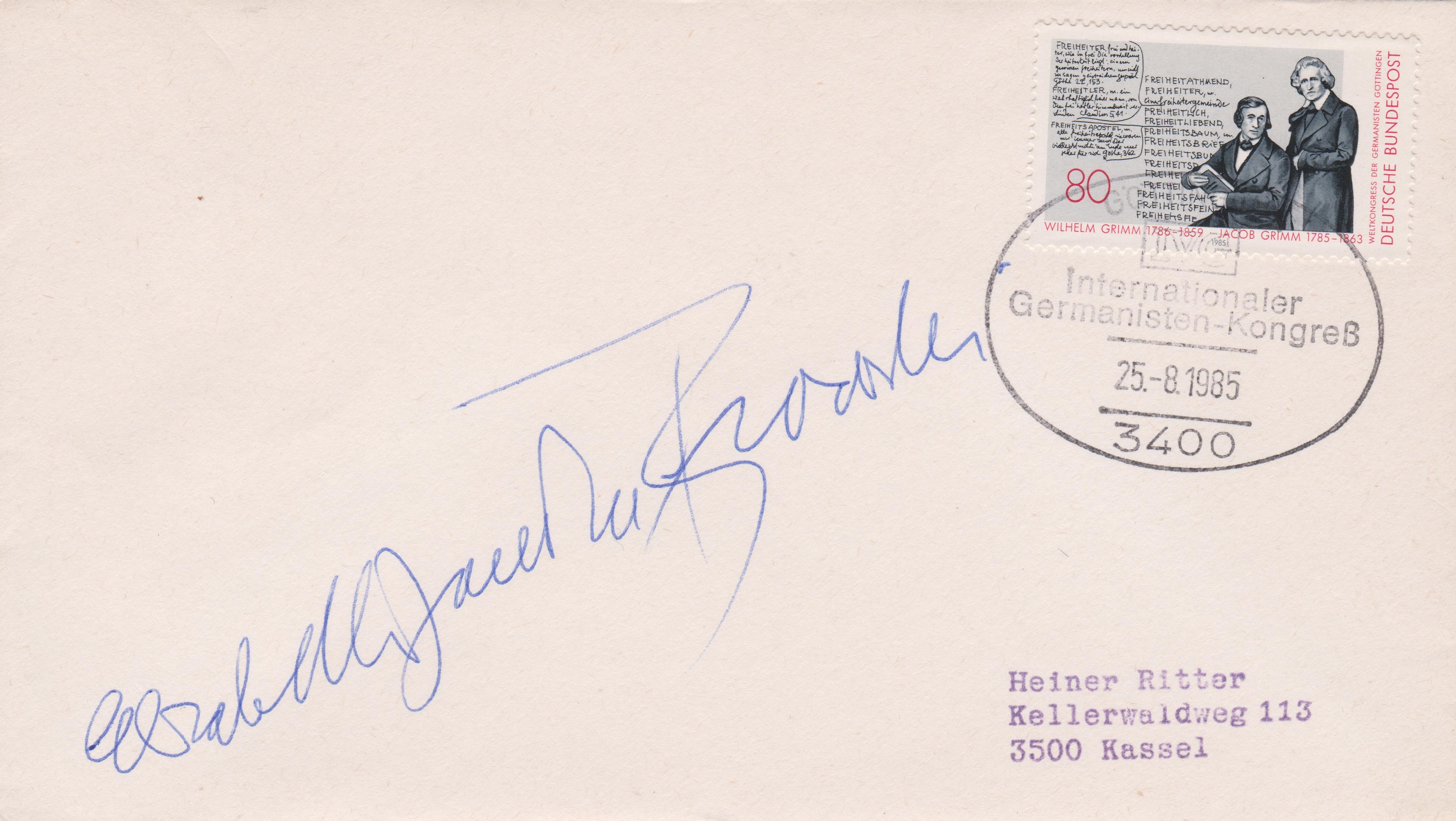 https://de.wikipedia.org/wiki/Elisabeth ... ta-BzowskiBeleg mit dem Elisabeth von Janota Bzowski entworfenen Postwertzeichen Bundesrepublik Deutschland MiNr. 1236 sowie Original-utogramm der Künstlerin: