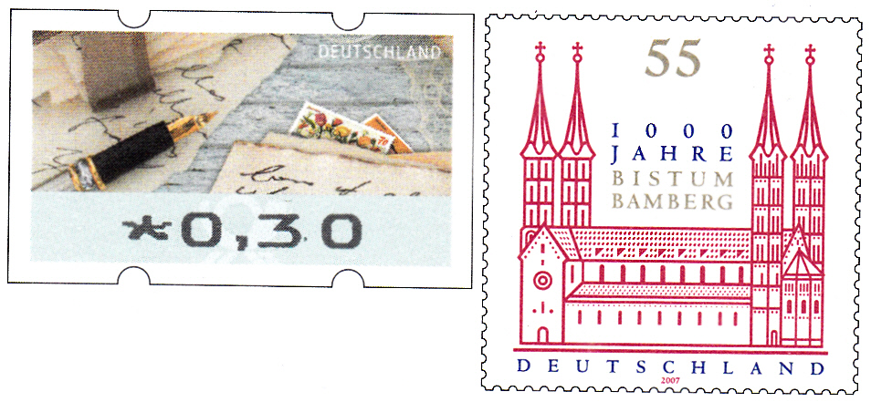 Zum 1000. Todestag von Kaiser Heinrich II. erschien dieser Ganzsachenumschlag mit einem Wertstempel "1000 Jahre Bistum Bamberg" (MiNr 2579) mit dem Bamberger Dom und einer Automatenmarke zu 0,30€.
