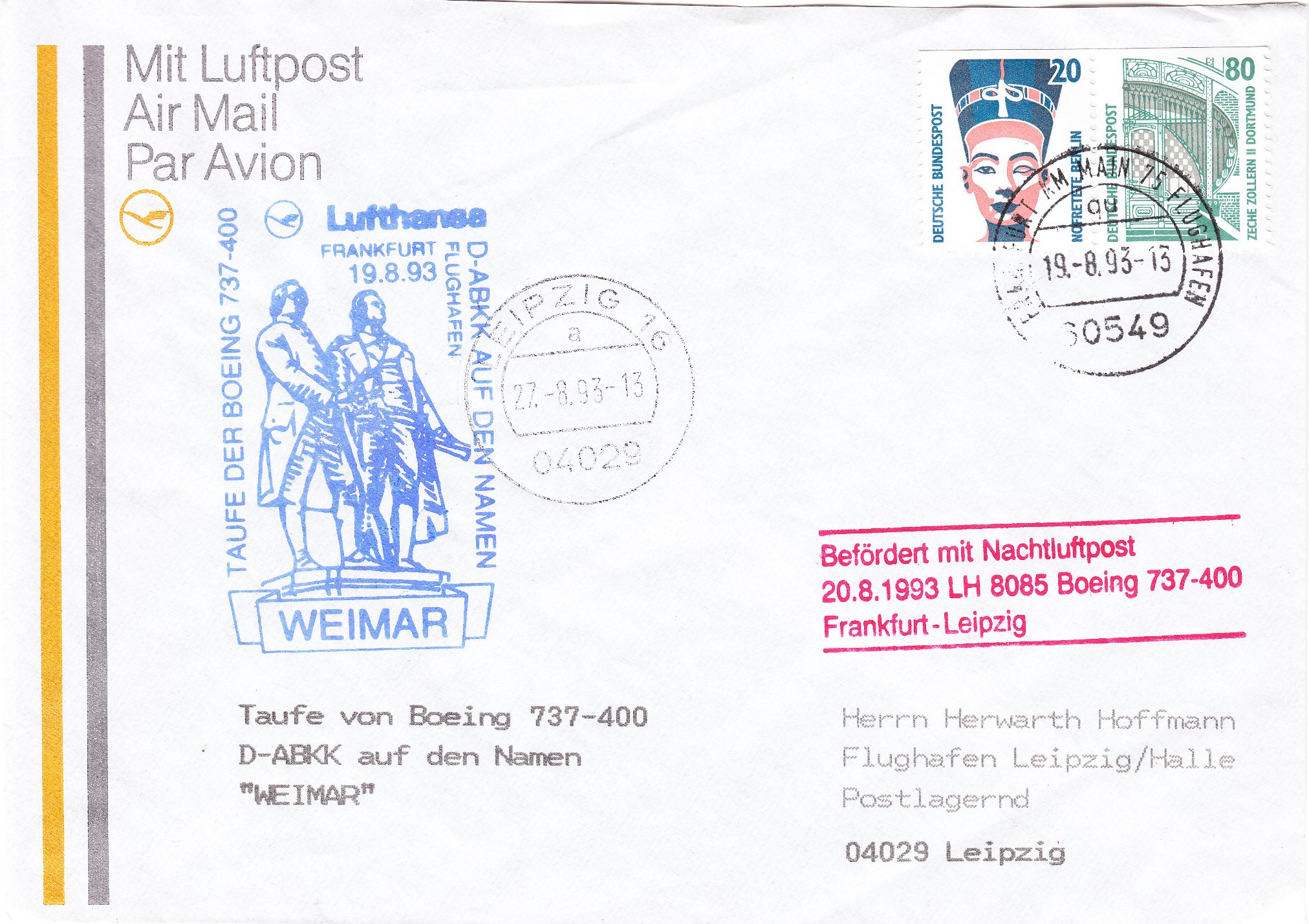 Vom Stuttgarter Flughafen aus wurde dieser Beleg dann per Inlandsluftpost zum Flughafen Hannover befördert, weshalb dieser Beleg perfekt in dieses Thema passt.