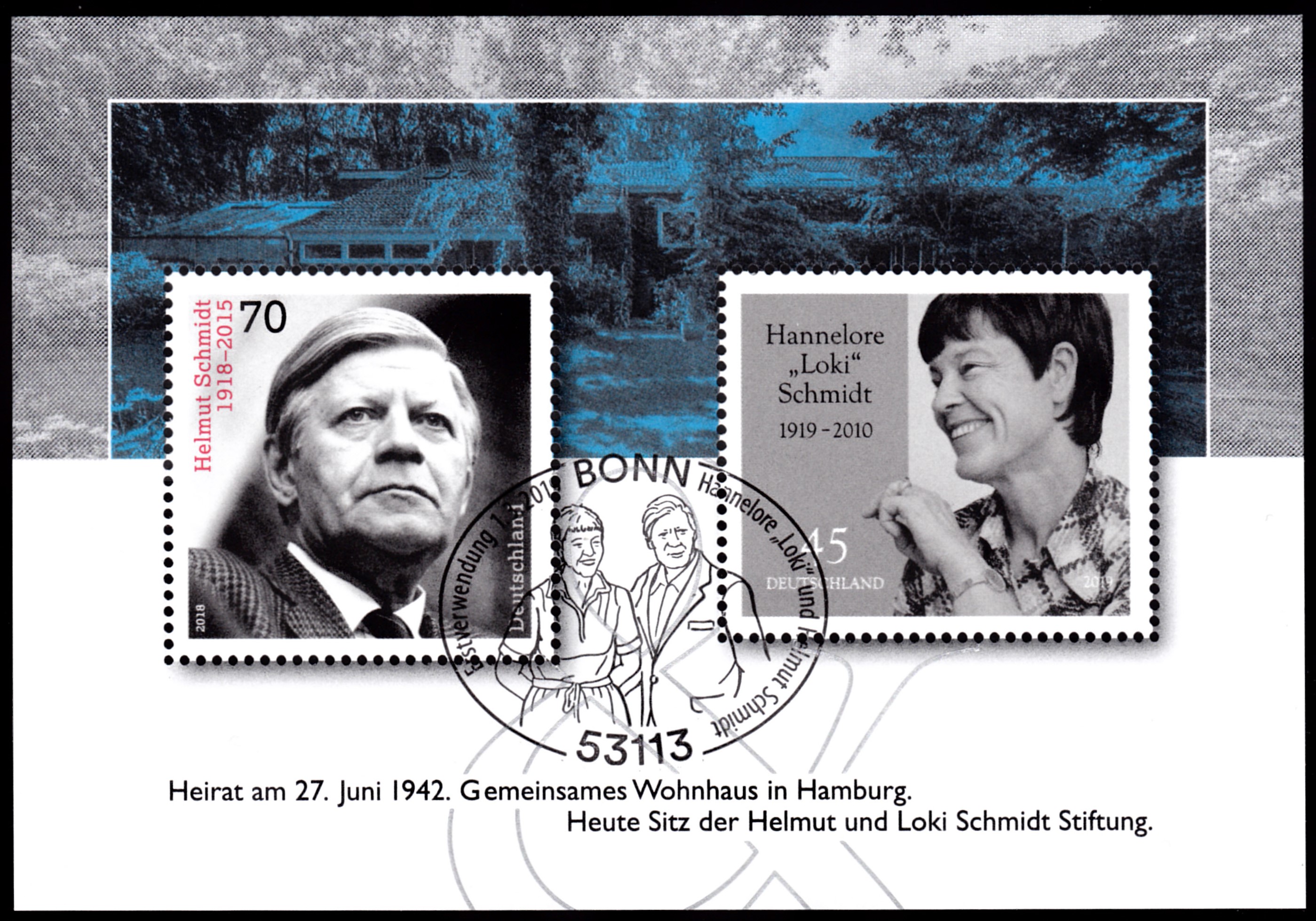 Block 83 erschien am 1.März 2018. Er enthält die beiden Marken MiNr. 3429 "Helmut Schmidt" und MiNr 3448 "Loki Schmidt". Der gezeigte Block ist mit einem Erstverwendungsstempel entwertet. auch dieser Block war nicht am "normalen Postschalter" erwerbbar, sondern nur über die Sonderpostfilialen der EB-Teams oder durch Bestellung in Weiden.