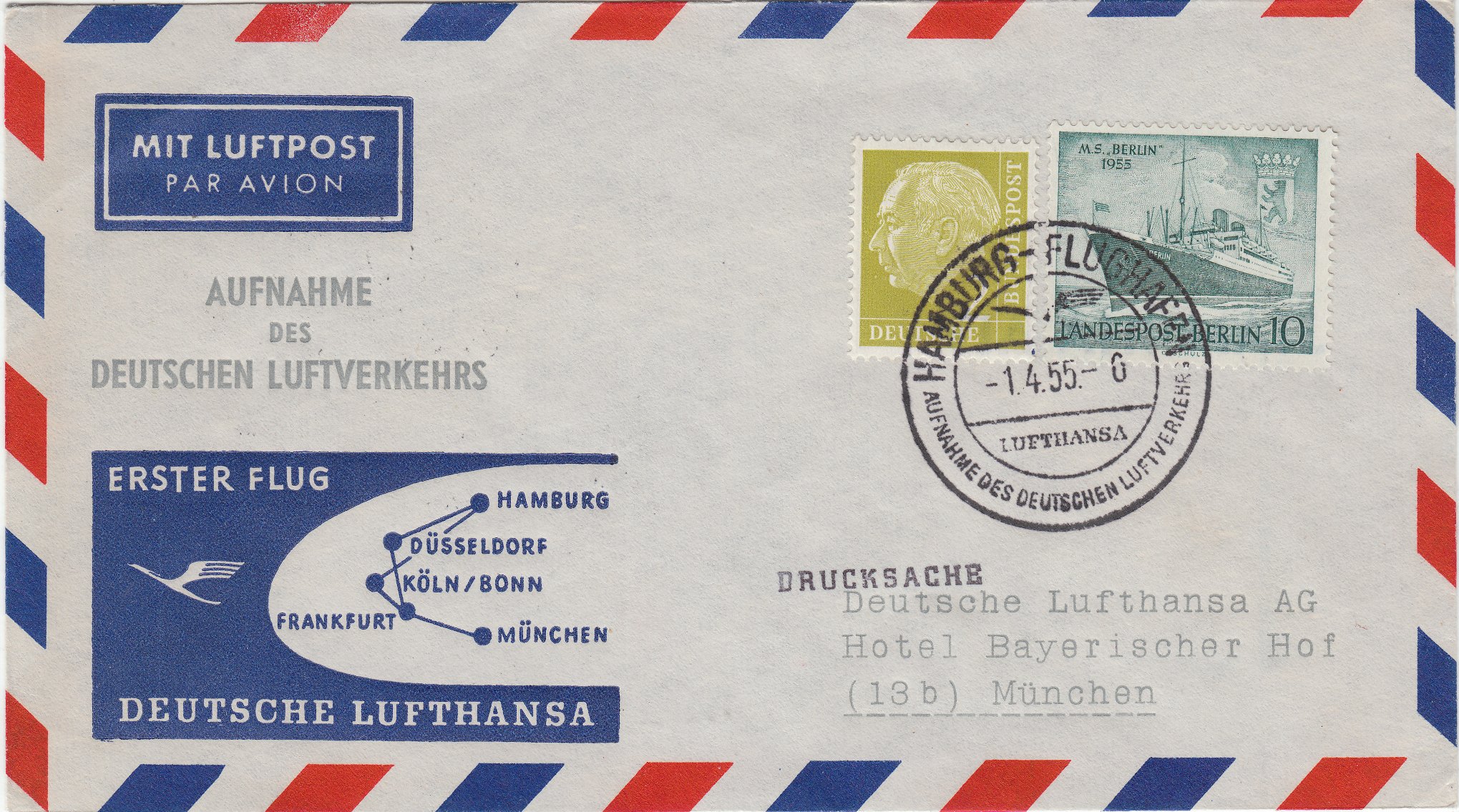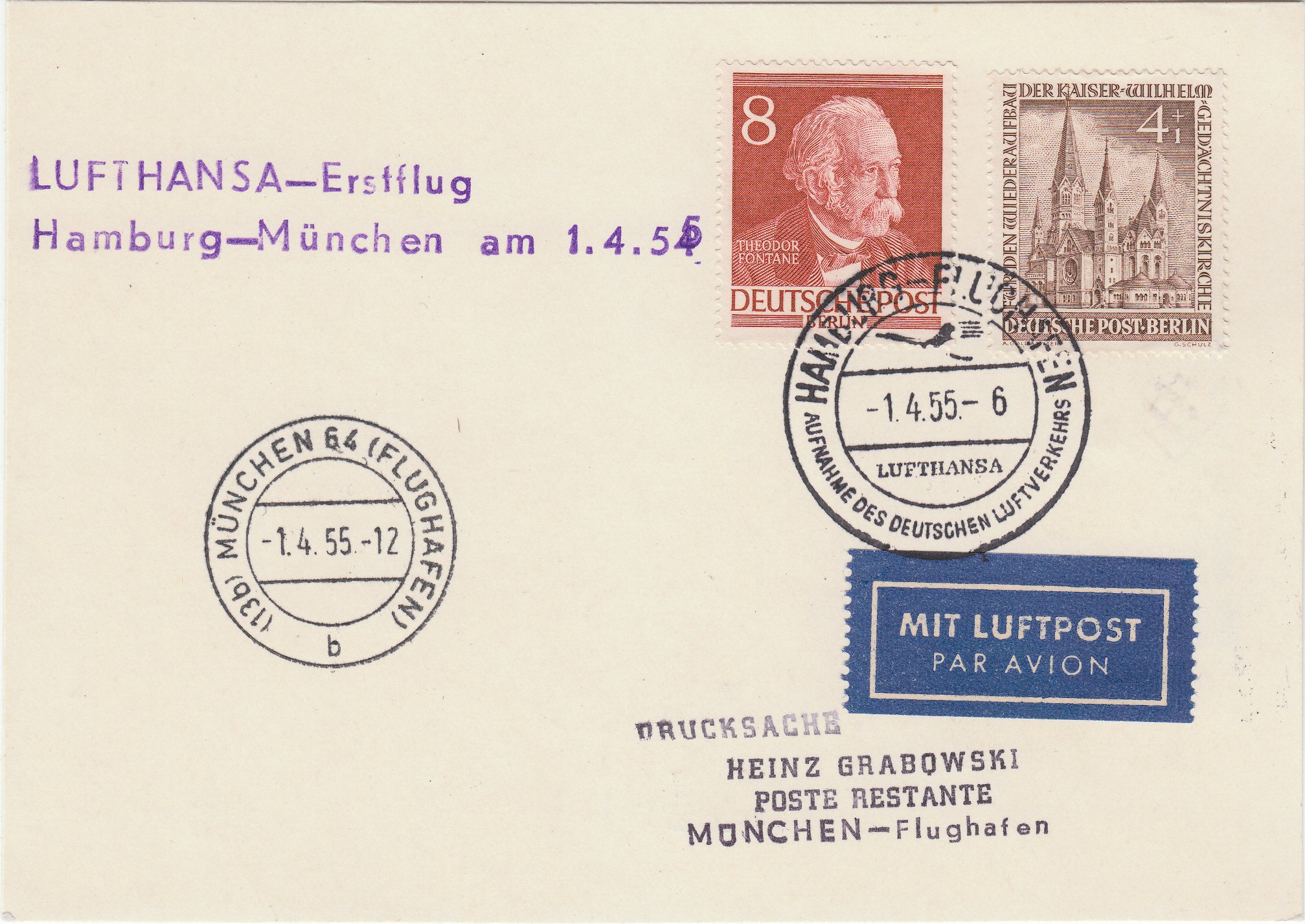 Der Beleg wurde per Sonderstempel am 11.08.1957 in Hamburg 36 entwertet und laut Bestätigungsstempel dann per Sonderflug des Aero-Club Hamburg e.V. mit der Maschine D-EMED nach Helgoland befördert.