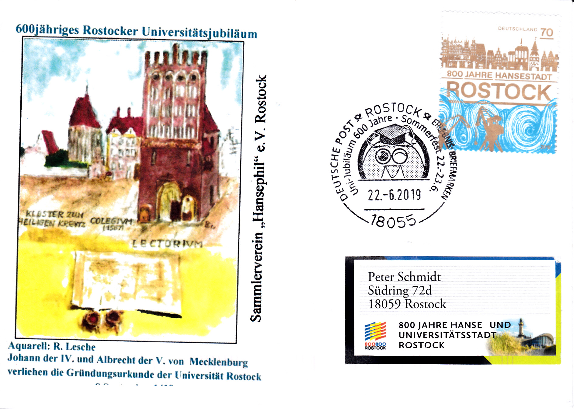 Dieser Standardbrief wurde in den letzten Tagen der Portoperiode am 22.6.2019 innerhalb Rostock mit einem Sonderstempel verschickt.