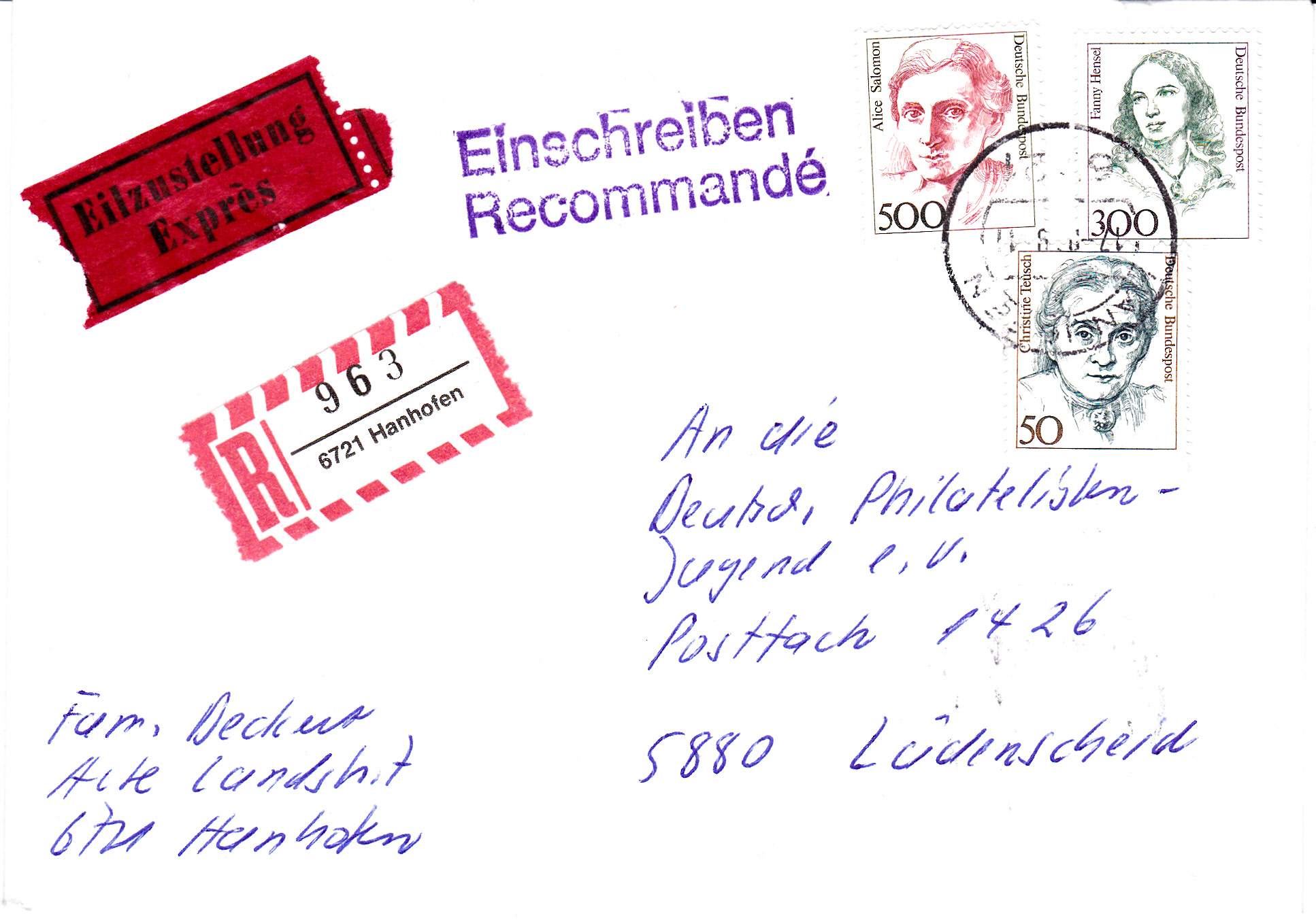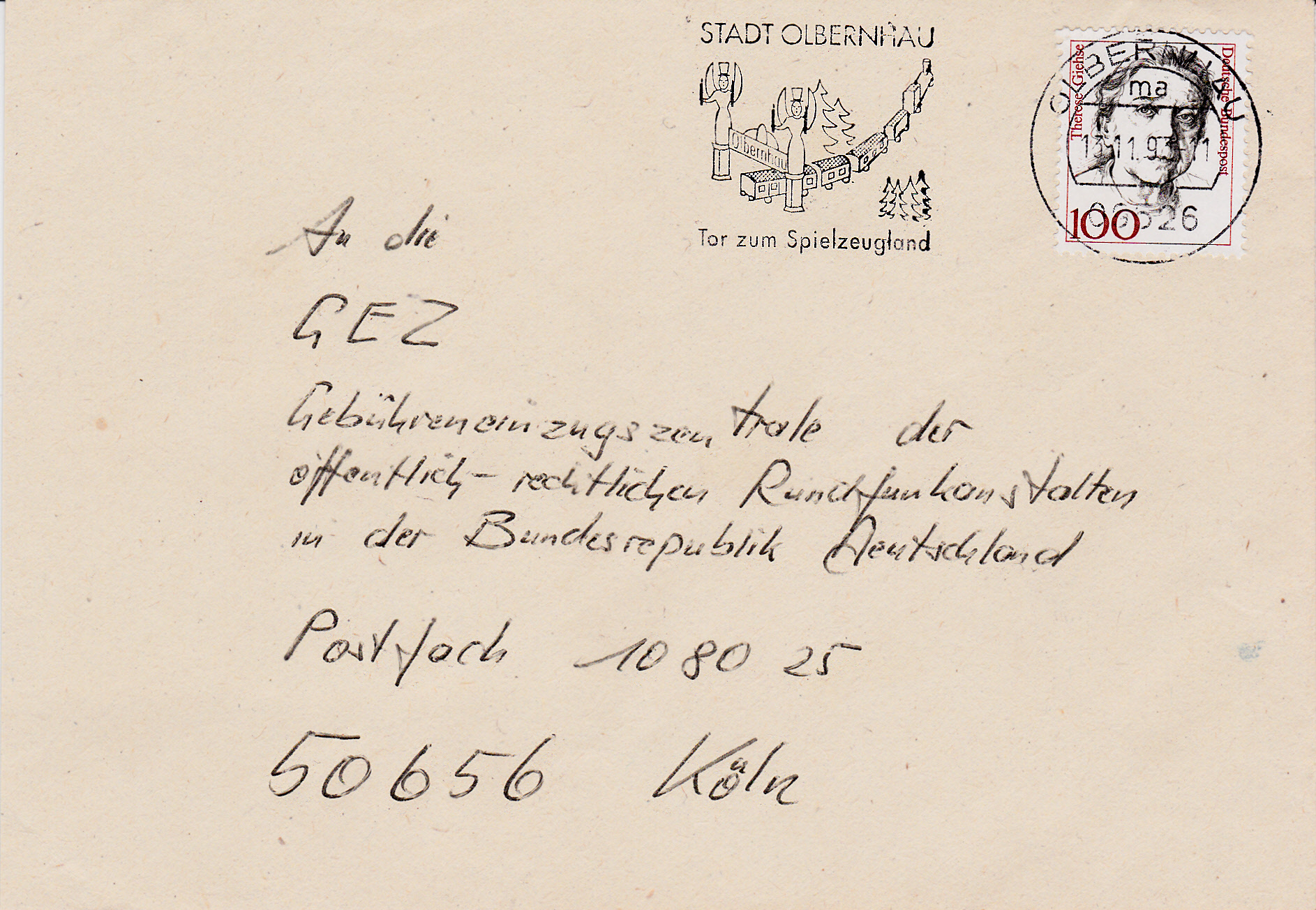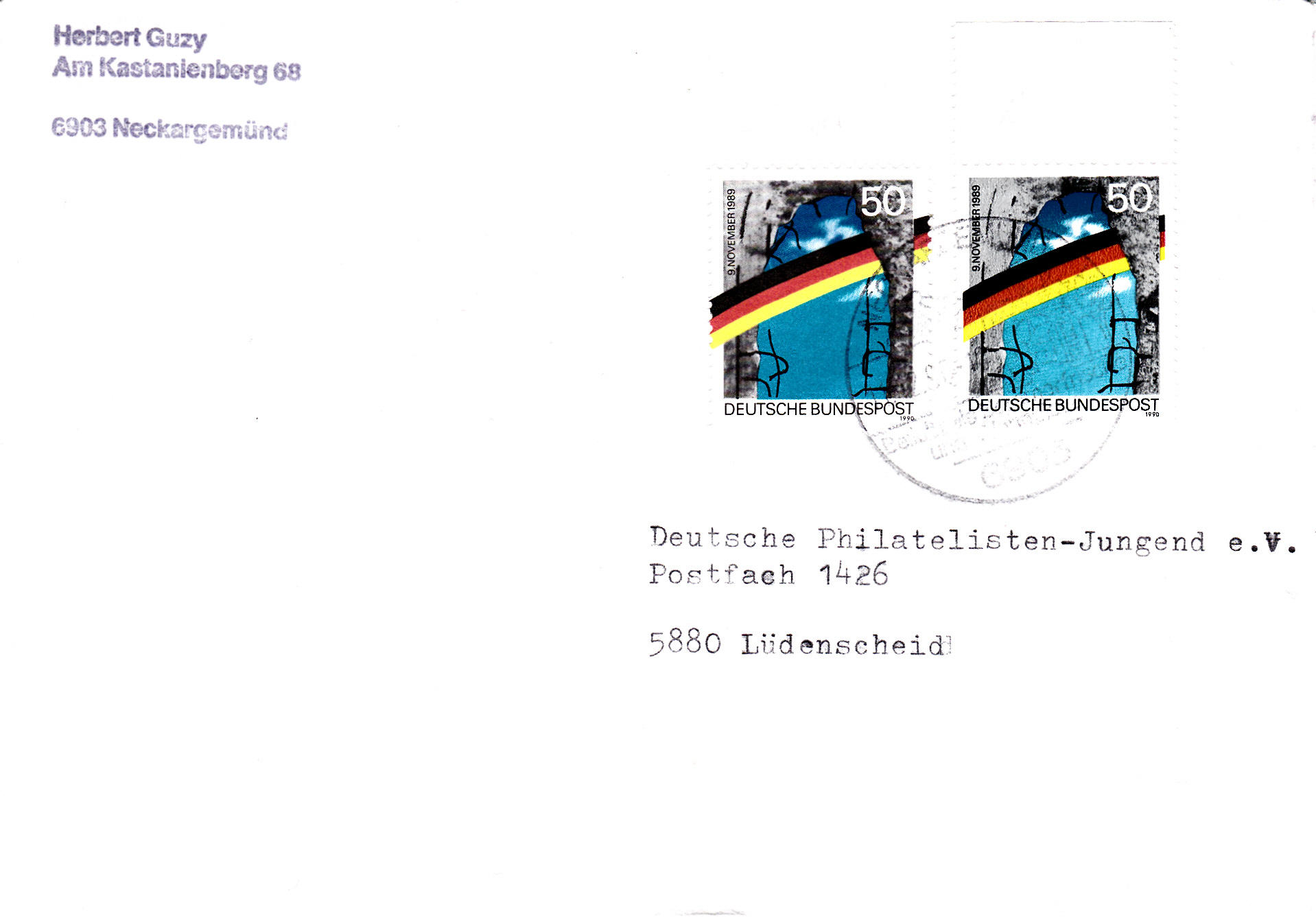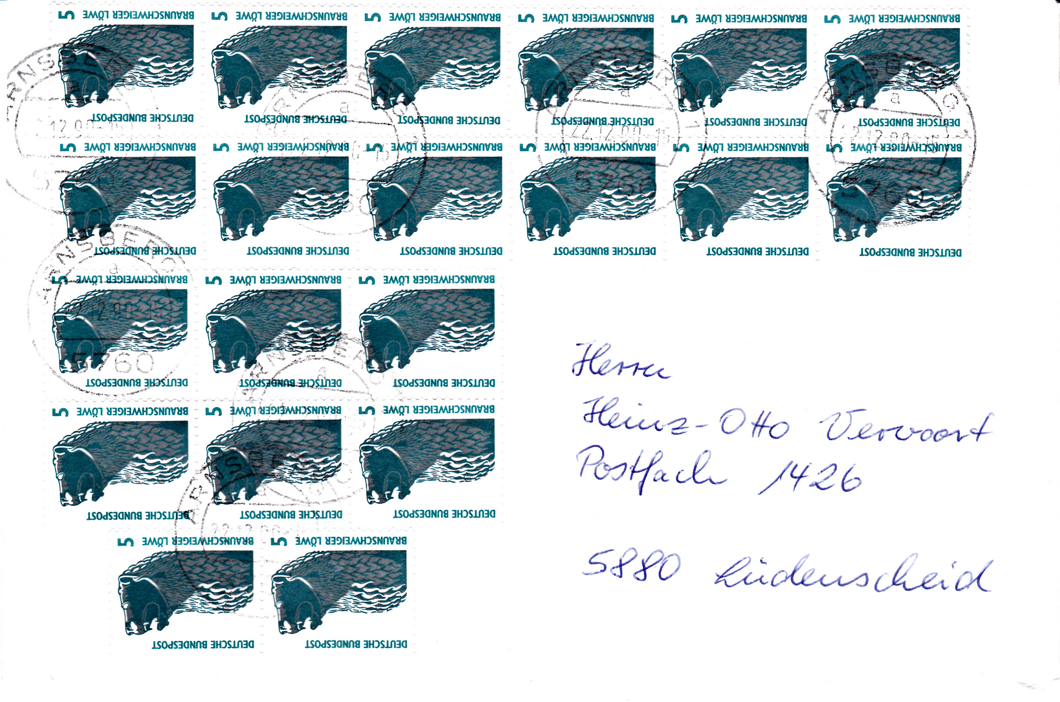 Ein Standardbrief bis 20 Gramm innerhalb der Bundesrepublik kostete in der Zeit von 1.4.1989 bis zum 31.8.1997 100 Pfennige.