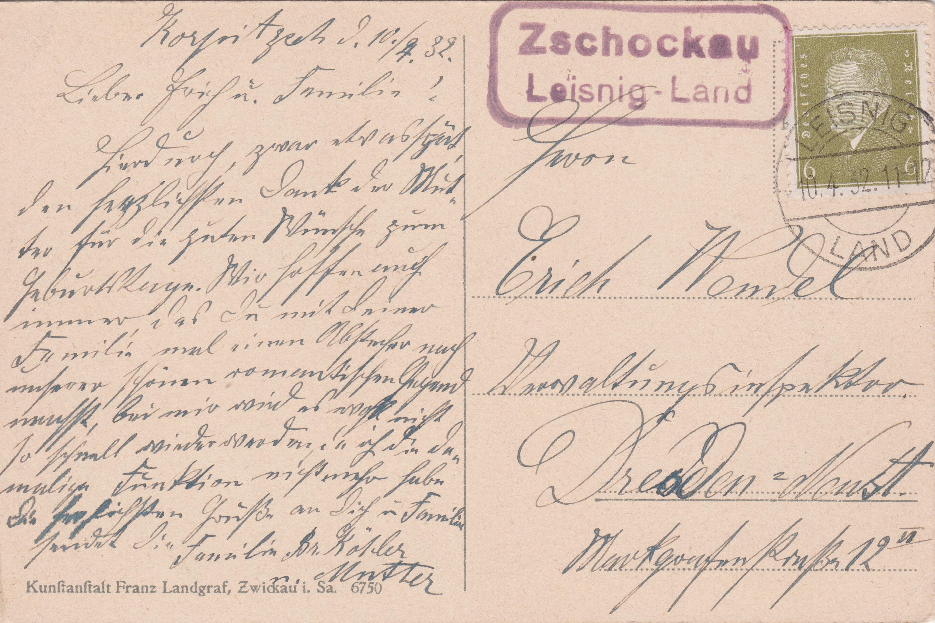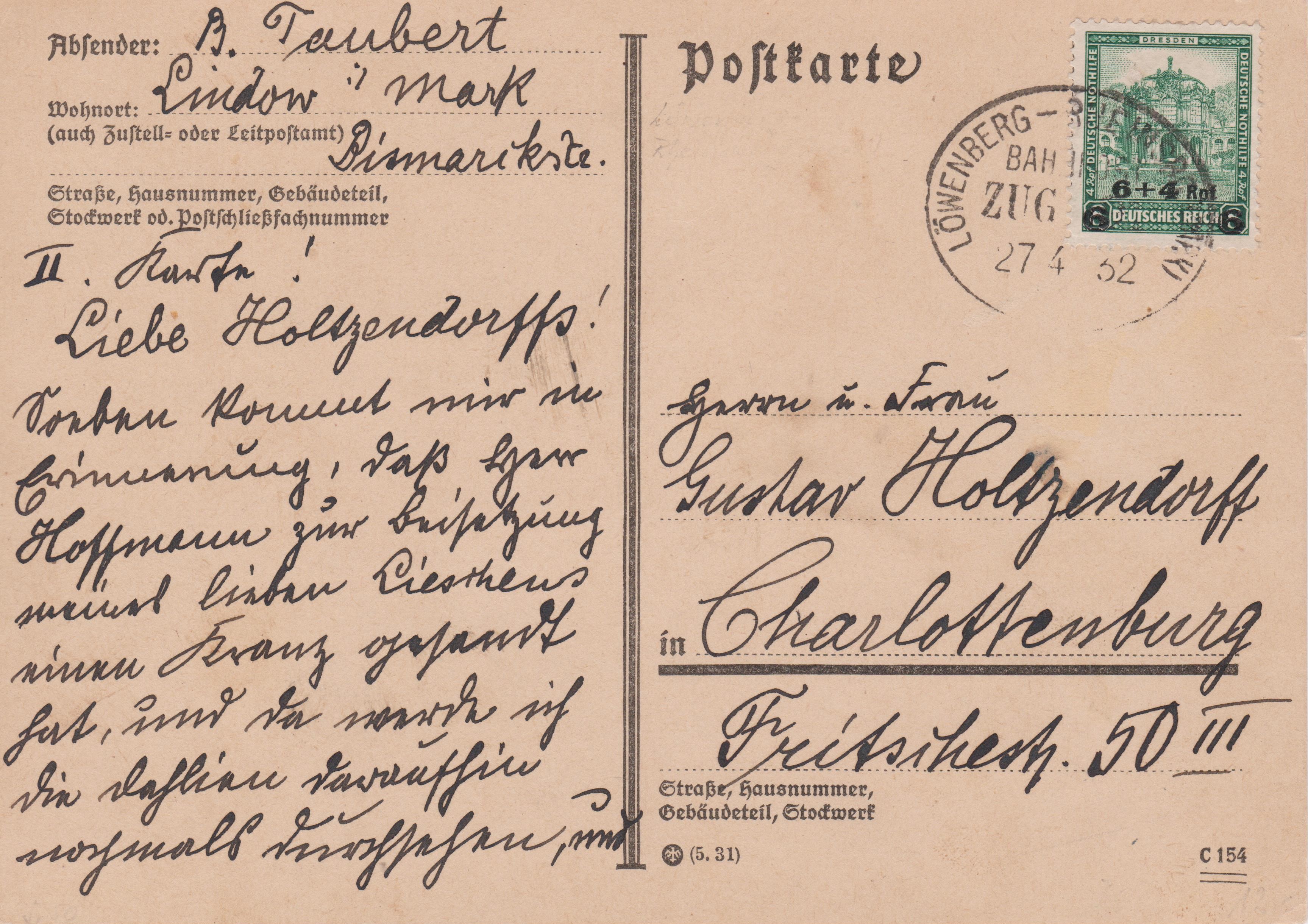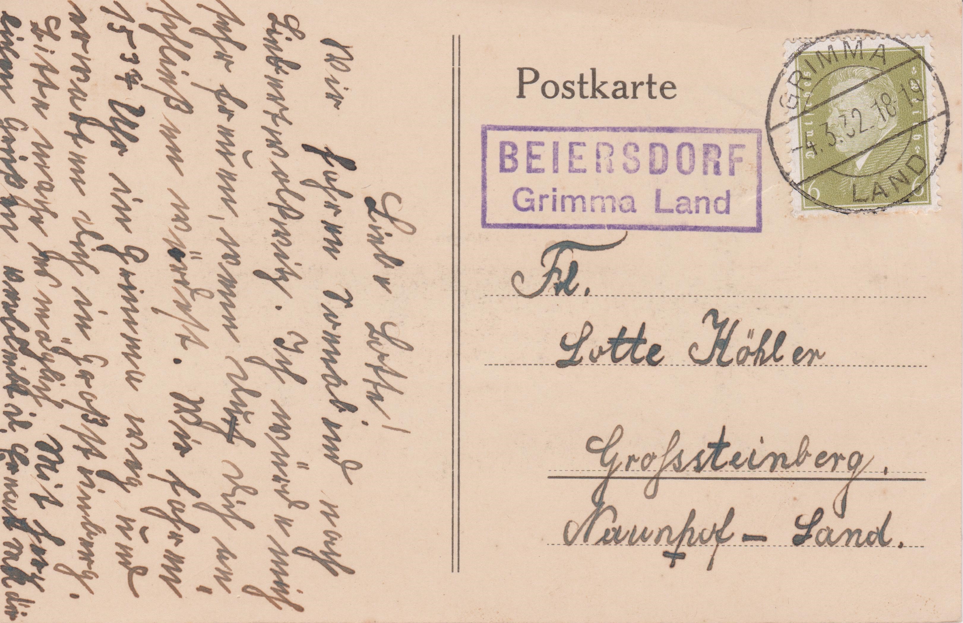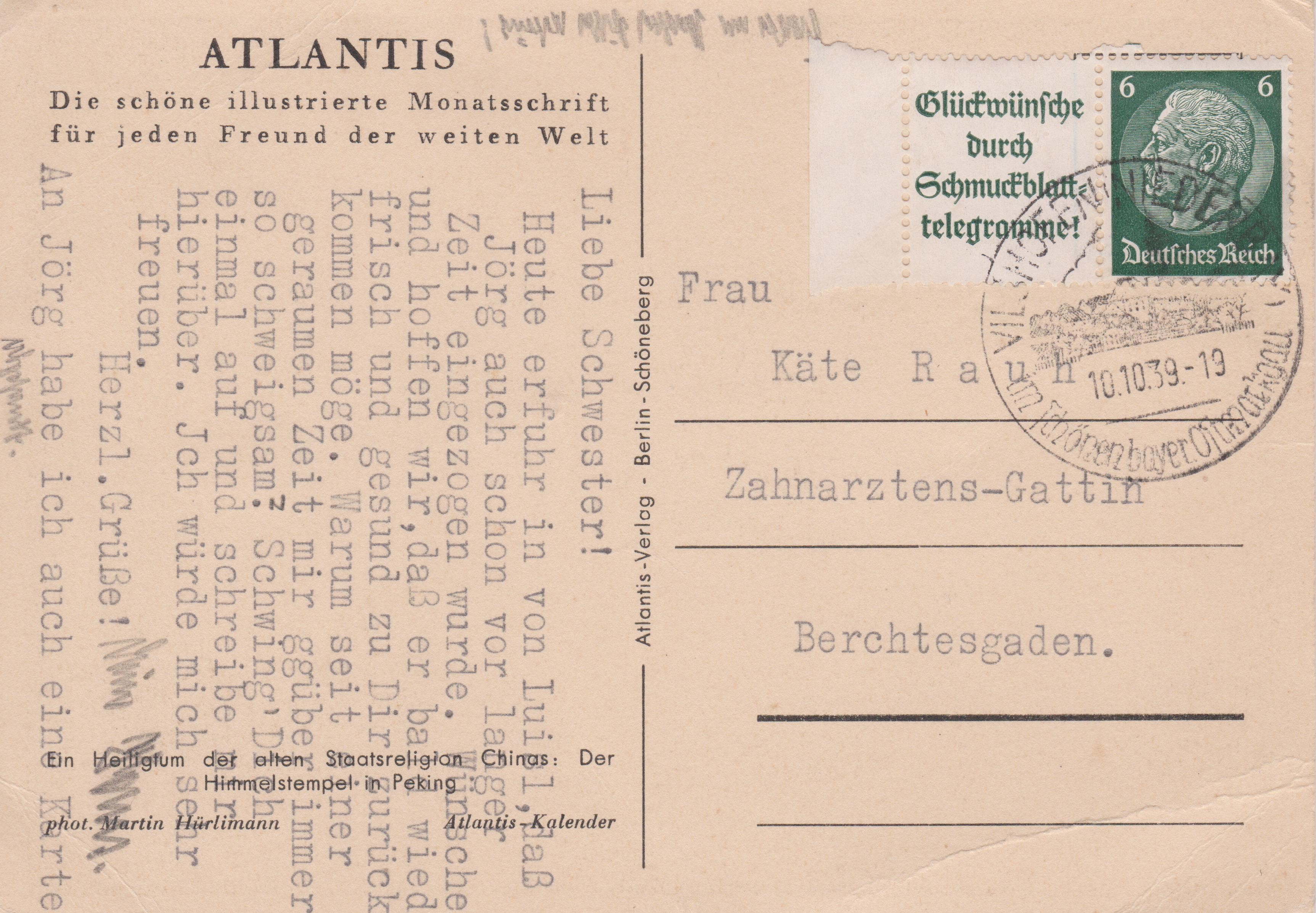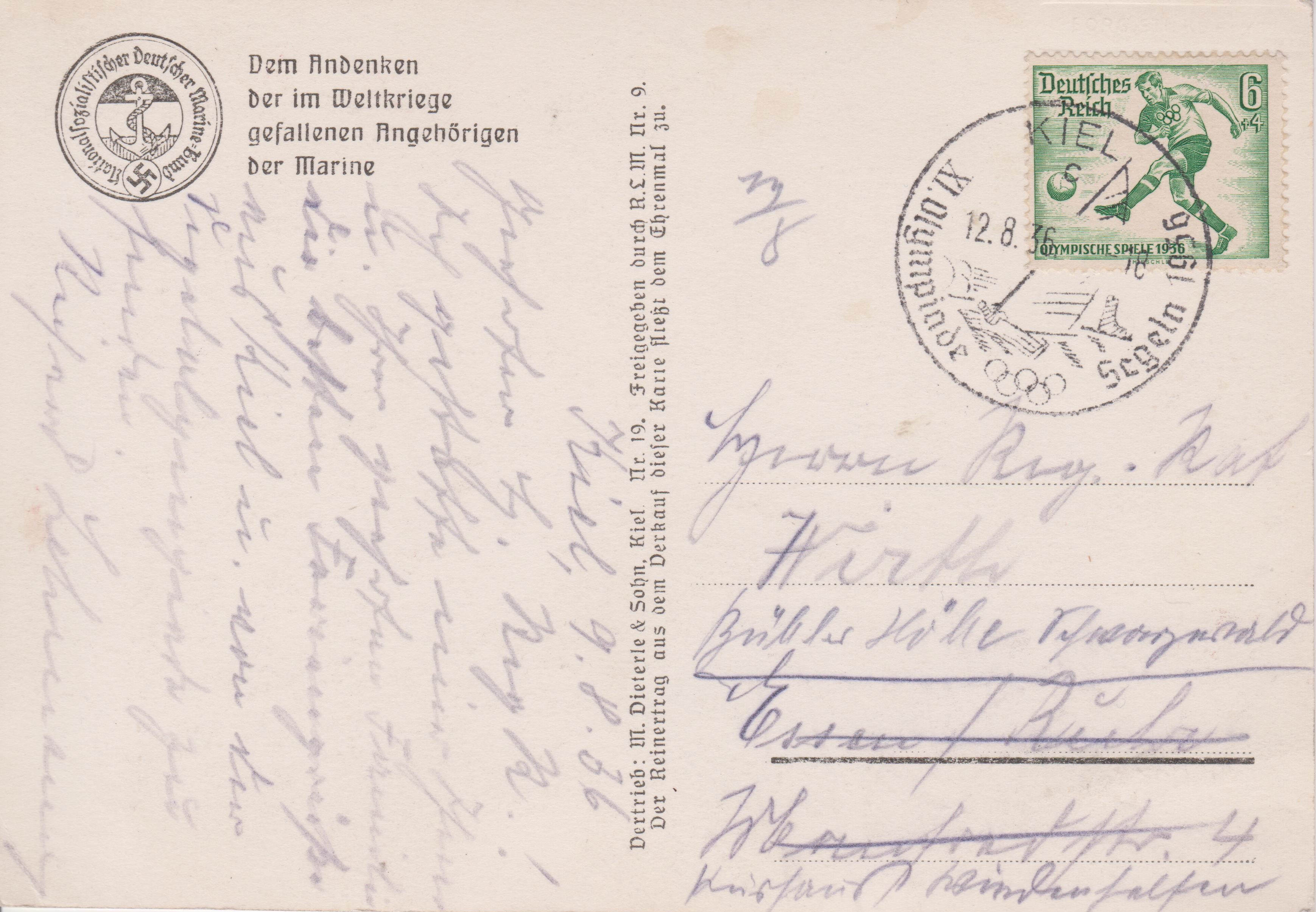 Da der Maschinenstempel das verklebte Postwertzeichen verfehlte wurde dieses per Handstempel am 31.08.1933 zwischen 20 und 21 Uhr entwertet!