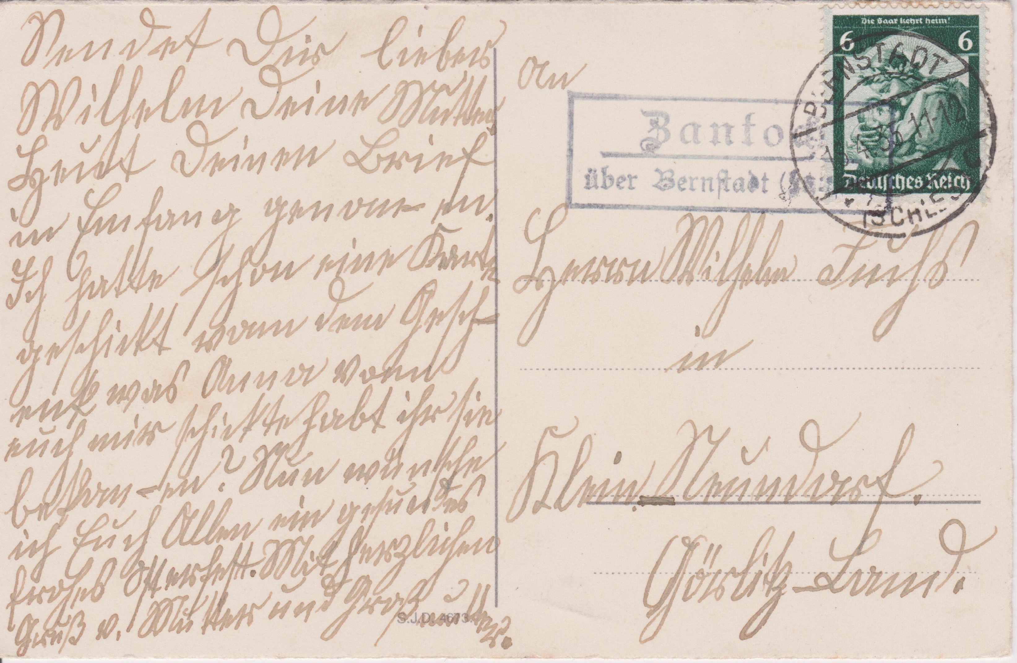 Diese Postkarte lief am 31.08.1933 zwischen 18 und 19 Uhr in BREESLAU durch die Stempelmaschine.
