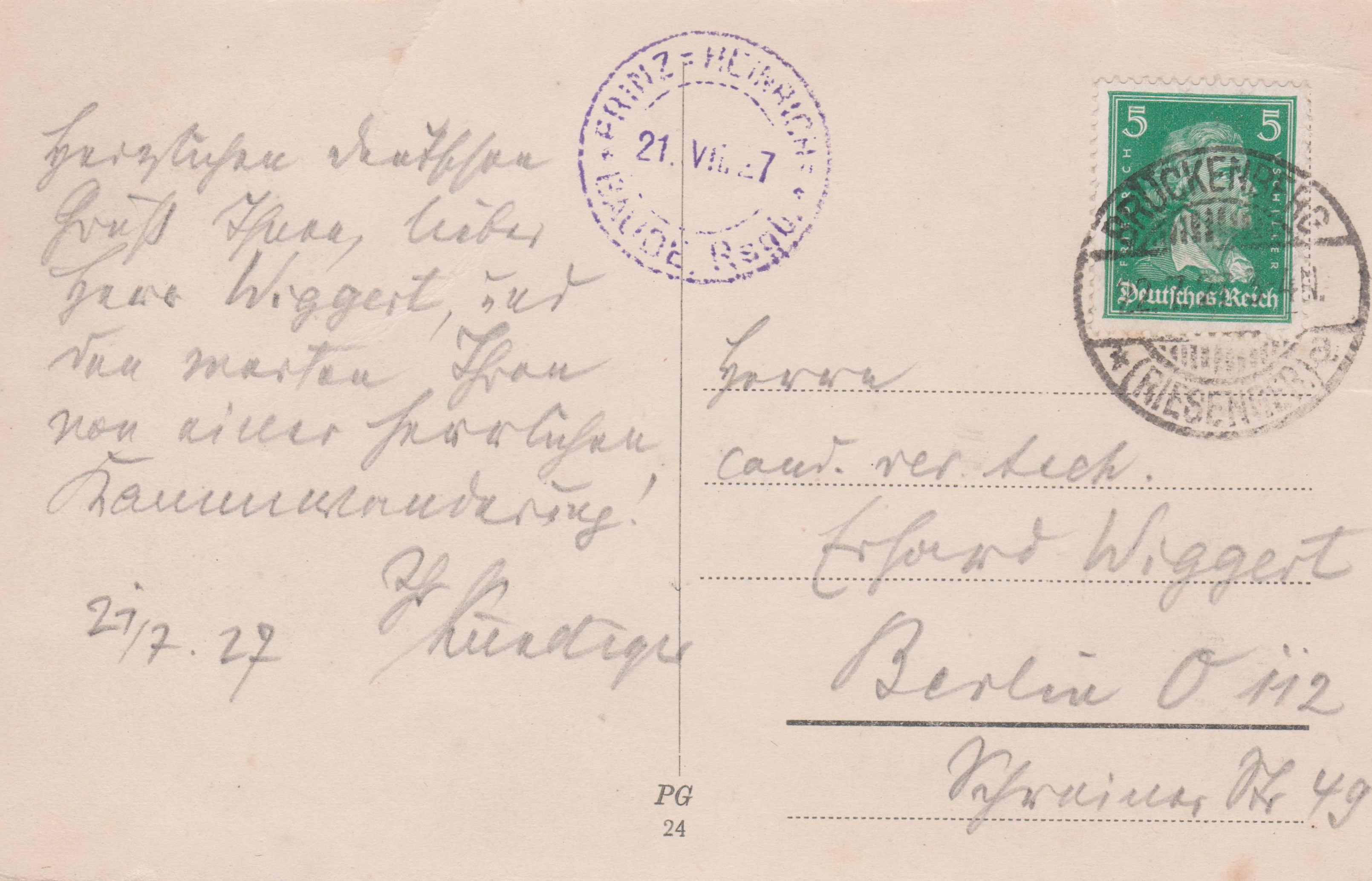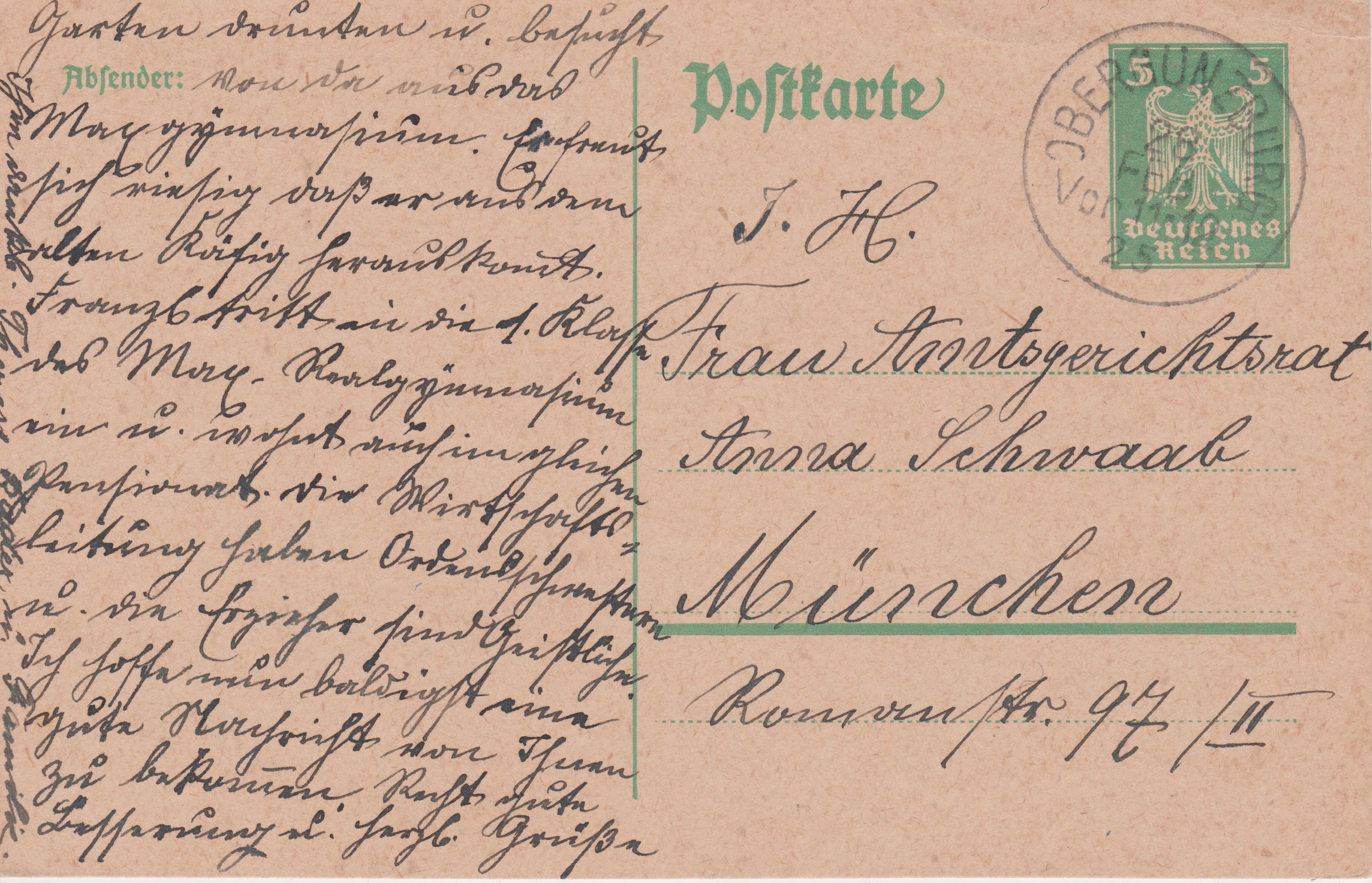 Die Portostufe 5 Pf für Postkarten im Fernverkehr galt vom 01.12.1923 bis zum 31.07.1927