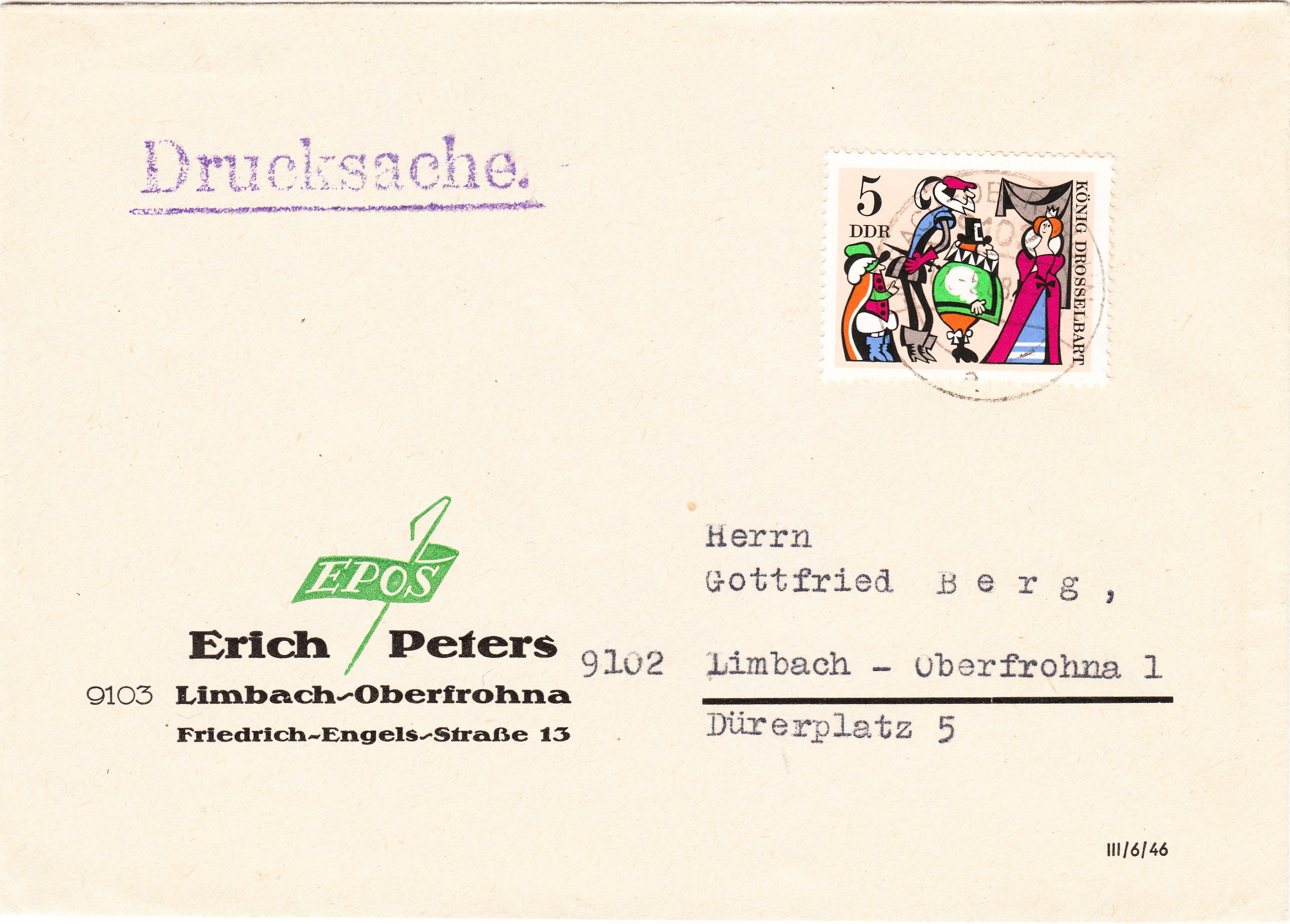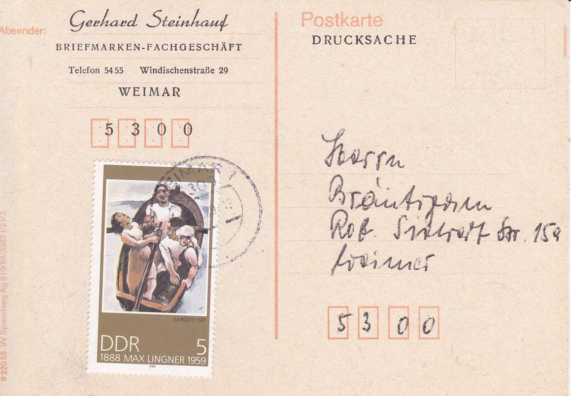 In der DDR galt vom 01.10.1954 bis zum 30.06.1990 für Drucksachen bis 20 g die Portostufe 5 Pfennig!