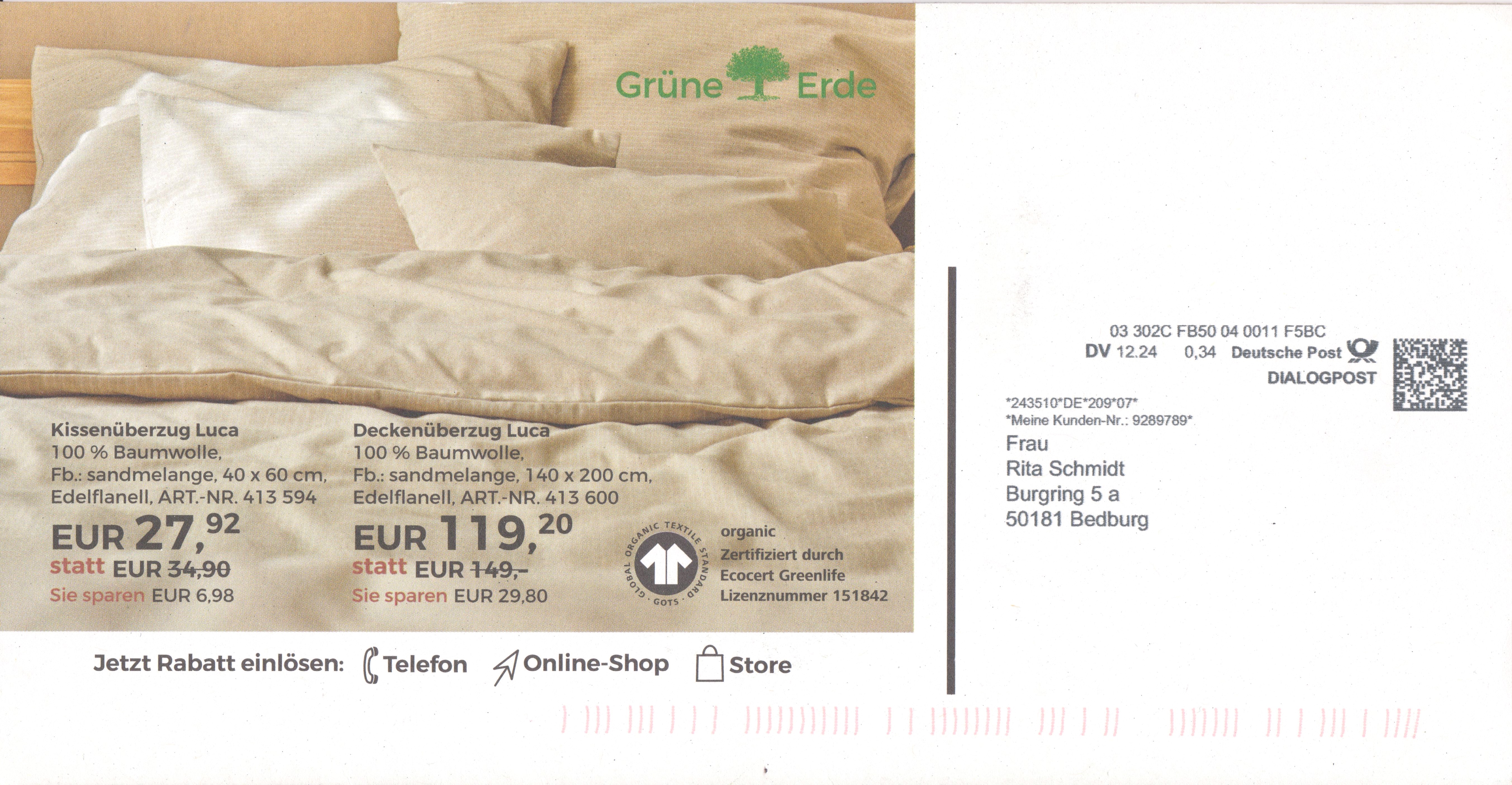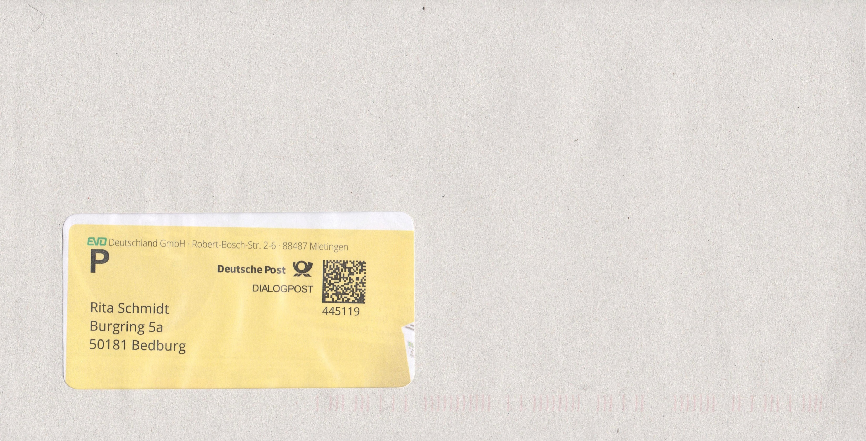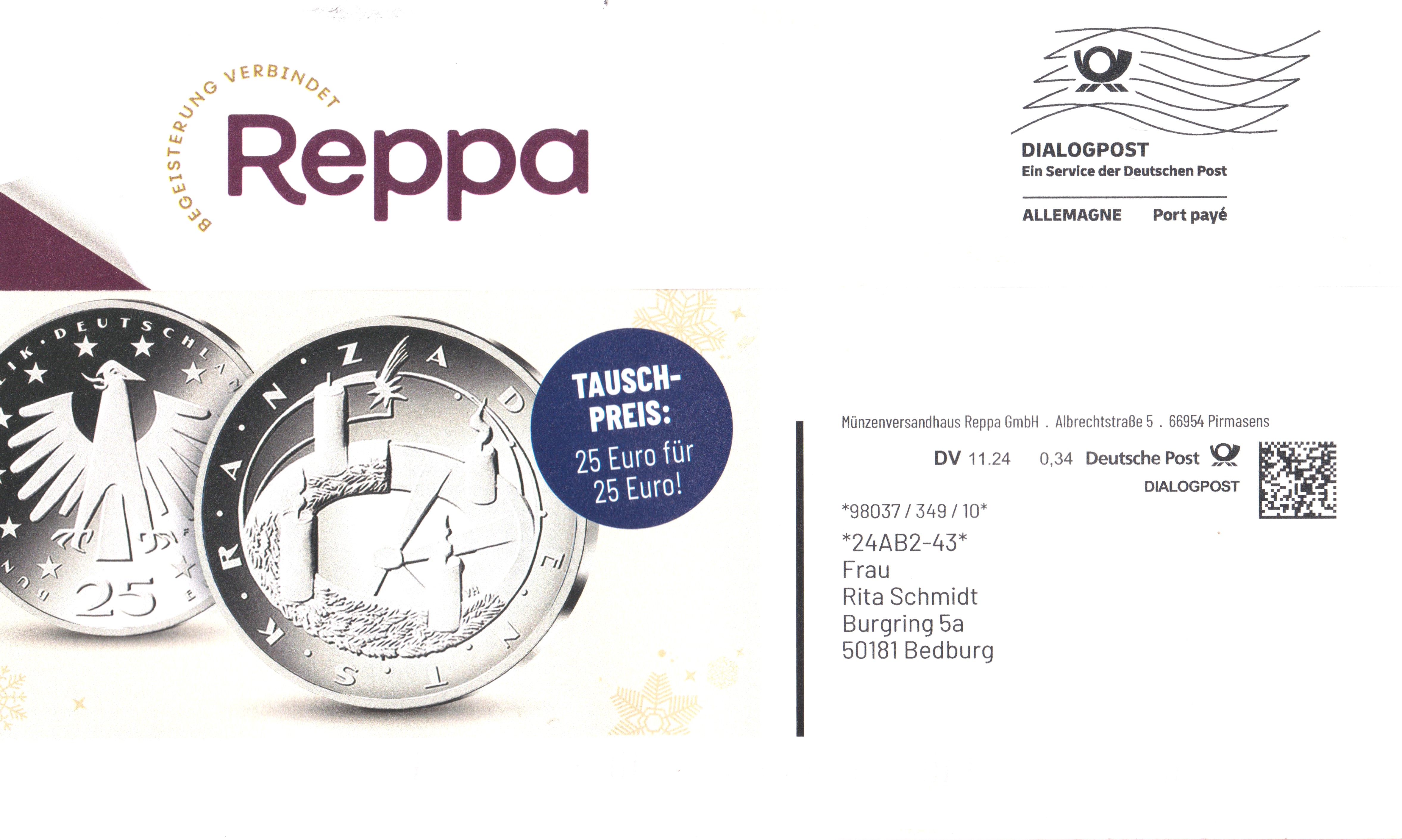 Aktuelle DIALOGPOST in Briefform aus dem Januar 2025 (= "01.25"), Portostufe 0,36 €:
