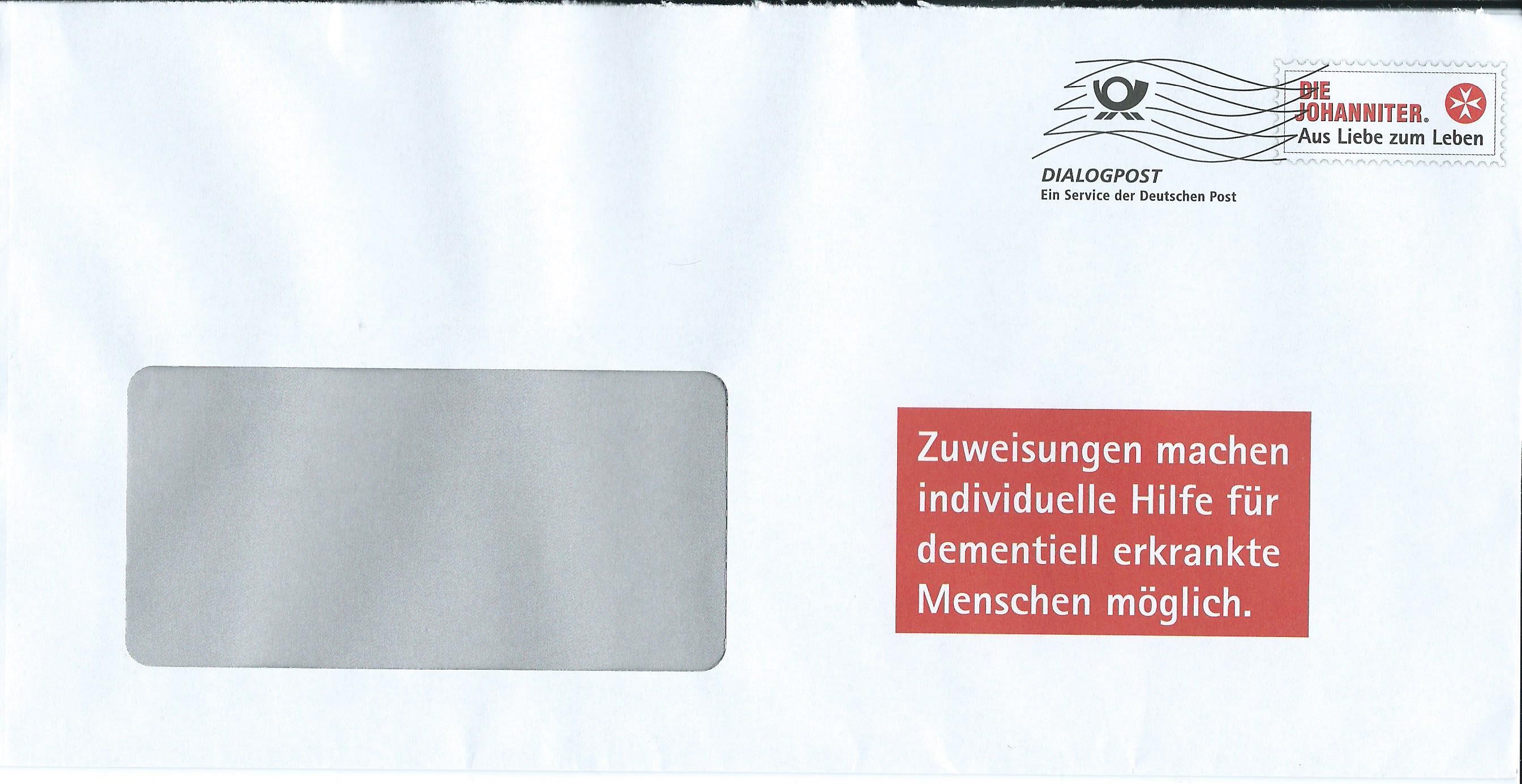 Und der dritte im Bunde ist ein neues Motiv von Aktion Deutschland hilft. Hier wieder nur die Frankierwelle mit dem Text „Dialogpost Ein Service der Deutschen Post“ ohne angedeuteten Wertstempel.