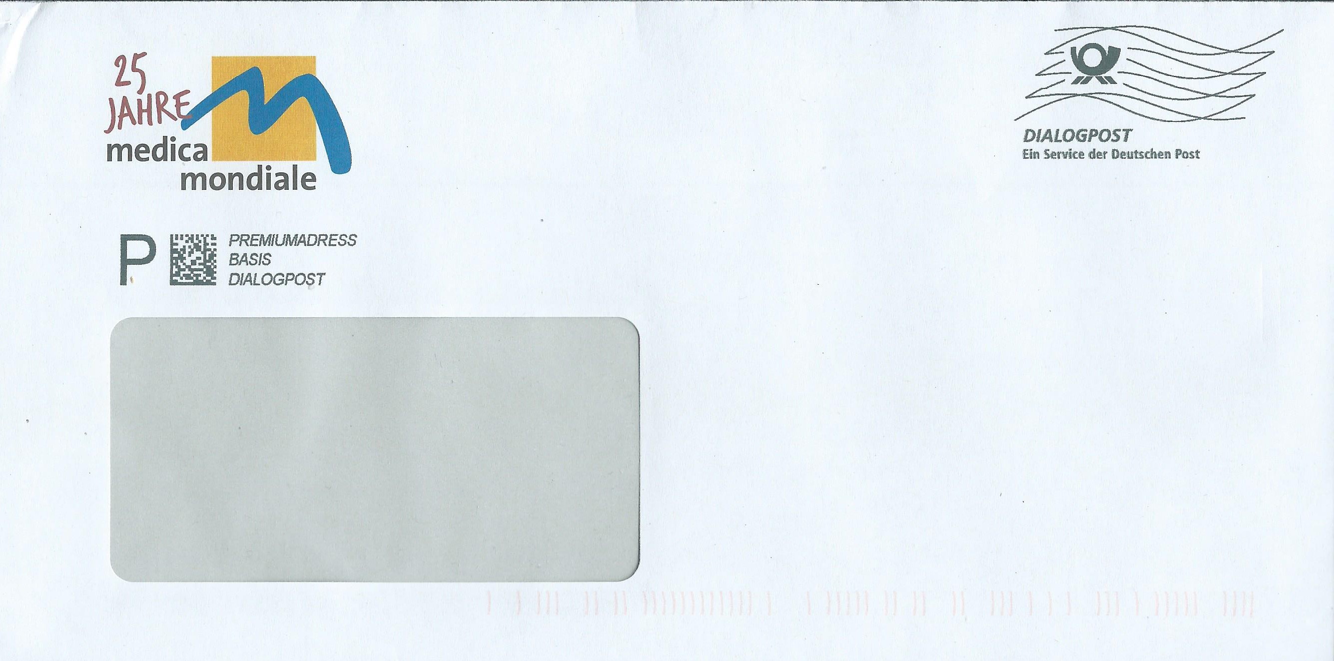 ...und zum anderen von medica mondiale, ebenfalls nur mit der Frankierwelle: