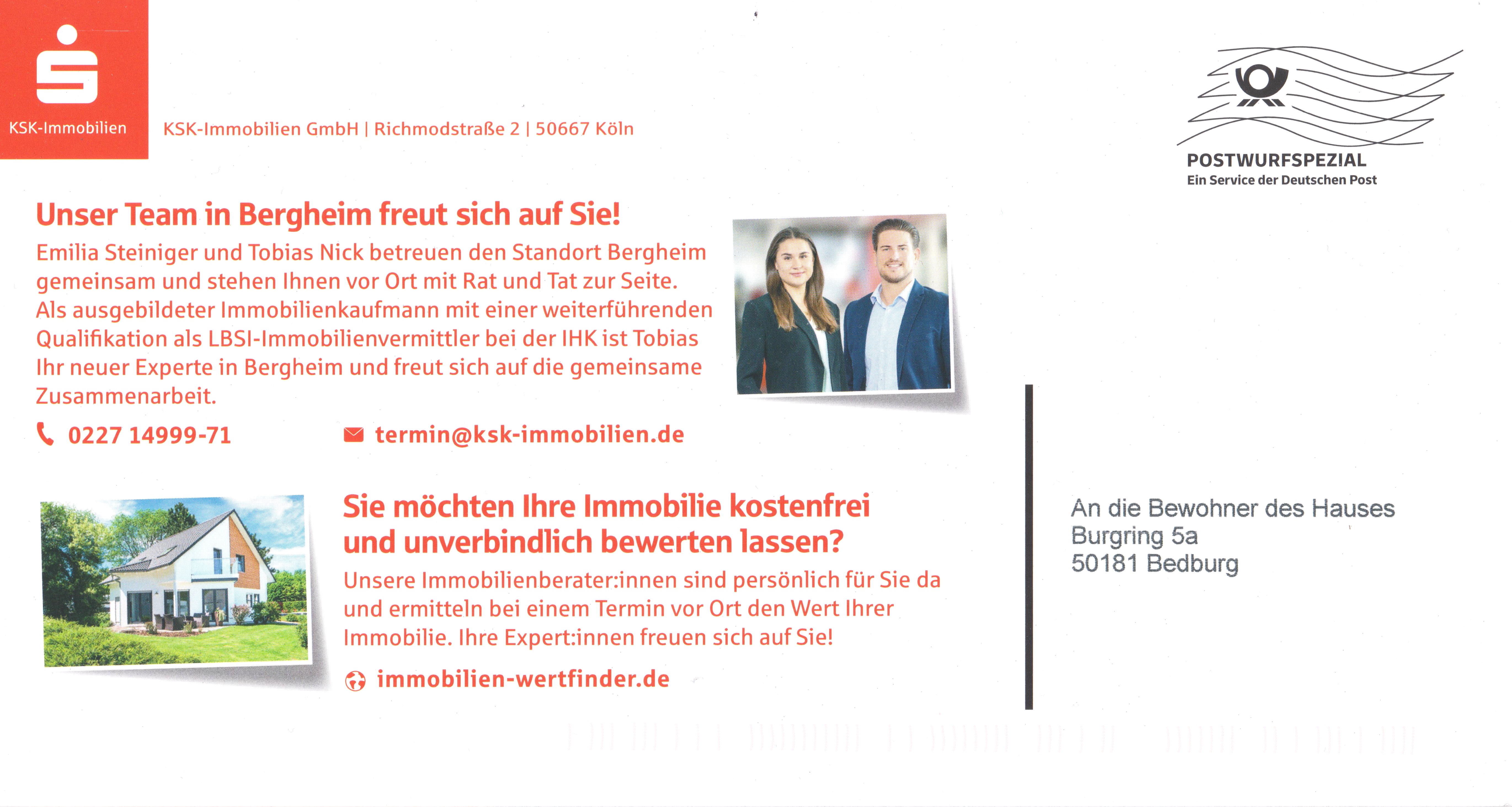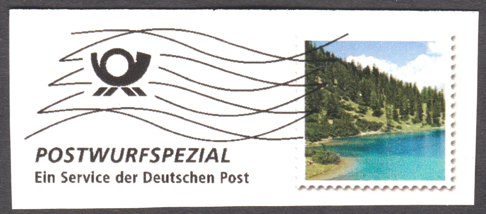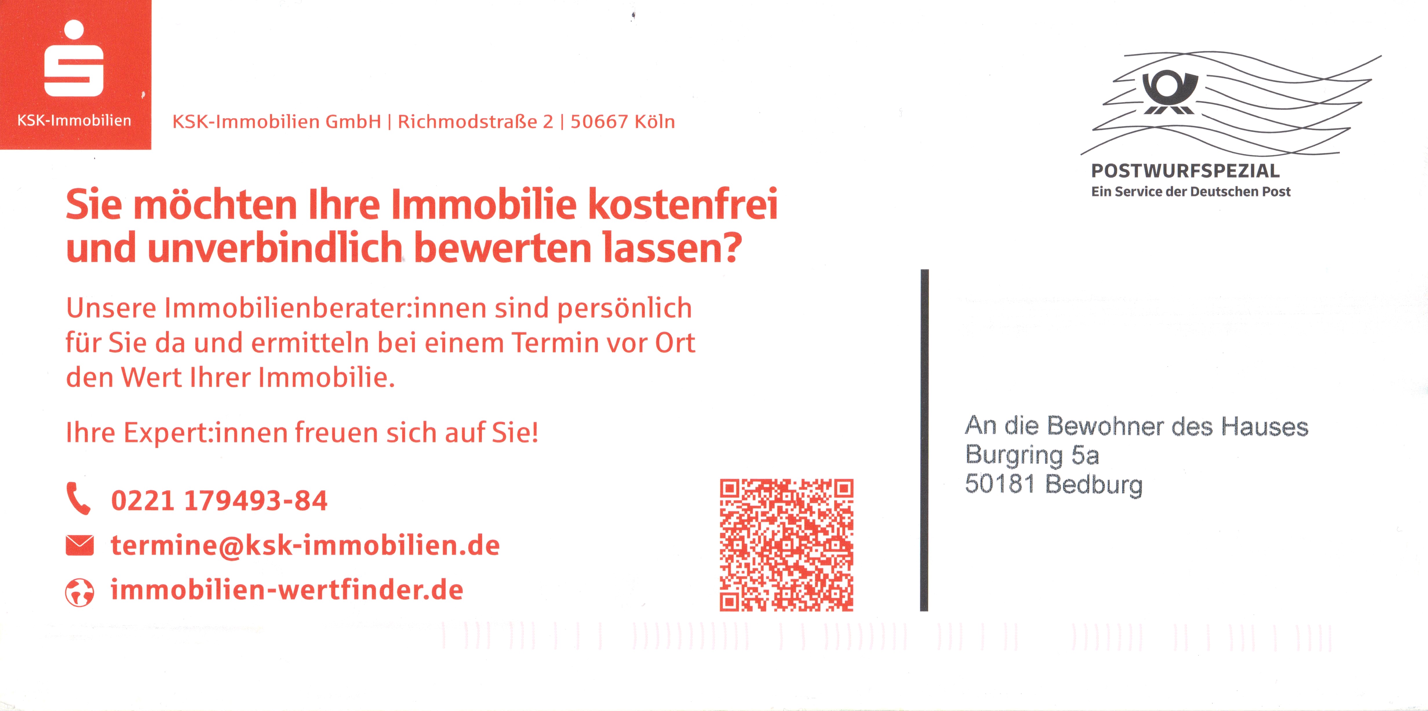 Hier eine Postwurfspezialsendung mit der Anschrift "An alle Bankkunden ...". Interessant ist hierbei auch der markenähnliche Zudruck oben rechts mit einer Wellen"entwertung".