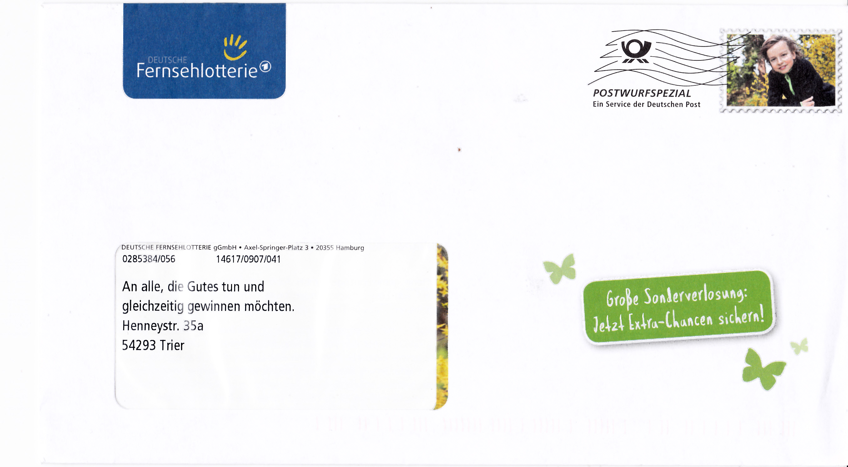 Die Postwurfsendung ist eine Versandform der Deutschen Post. Nicht adressierte Werbesendungen, wie Flyer, werden von Briefträgern der Deutschen Post verteilt. Bei der Postwurfspezial sind die Werbesendungen aber teilfrankiert z.B. "An alle Bewohner,.." oder ähnliches.