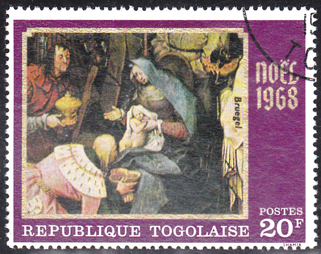 Aus einer Weihnachtsserie Togos aus dem Jahre 1968 kann ich hier auch diese Marken (MiNr 680 A) mit einem Gemälde von Bruegel zeigen.