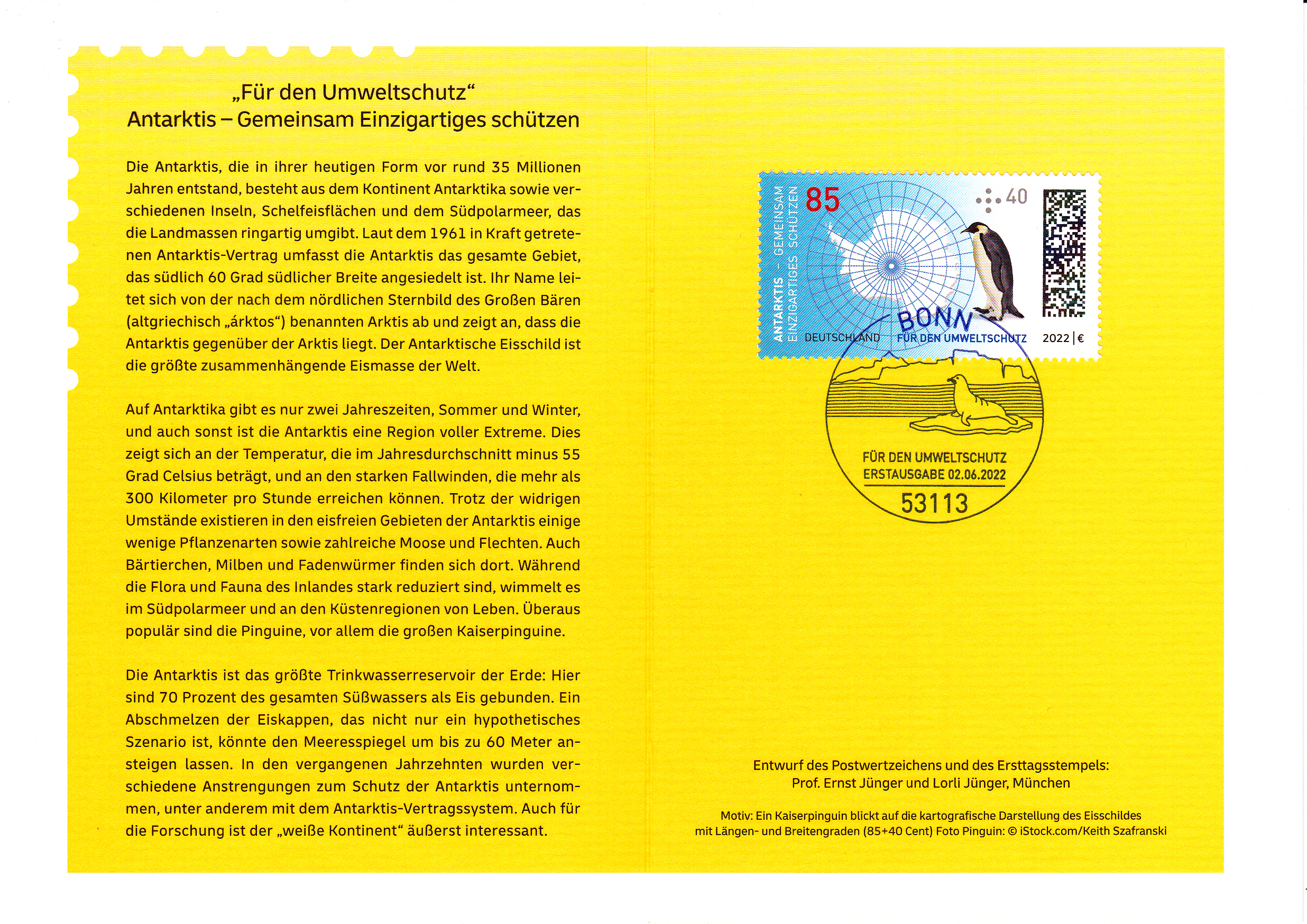 Klappkarte des Vorstandsvorsitzenden der Deutschen Post AG mit der Marke (MiNr 3689) "Umweltschutz" und dem Ersttagsonderstempel Bonn.