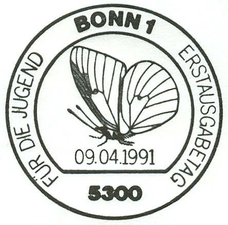 Am 9. April 1991 brachte die Deutsche Bundespost eine 8wertige Ausgabe Jugendmarken an die Schalter. Diese Zuschlagsmarken zeigen "Gefährdete Schmetterlinge".