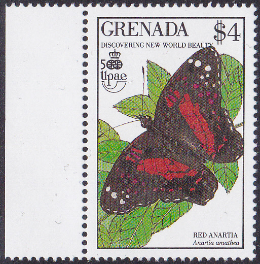 Auf dieser Marke aus Grenada (MiNr 2095) ist ein Anartia amathea zu sehen. Im Michel wird er Amathea-Admiral (Anartia amathea) genannt. Auf der Marke wird ein weiterer Namen in Englisch genannt: Red Anartia.