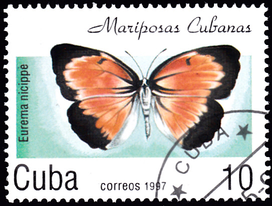 Auf dieser Marke aus Kuba (MiNr 4014) wird ein Eurema nicippe gezeigt. Michel nennt ihn Küster (Eurema nicippe).
