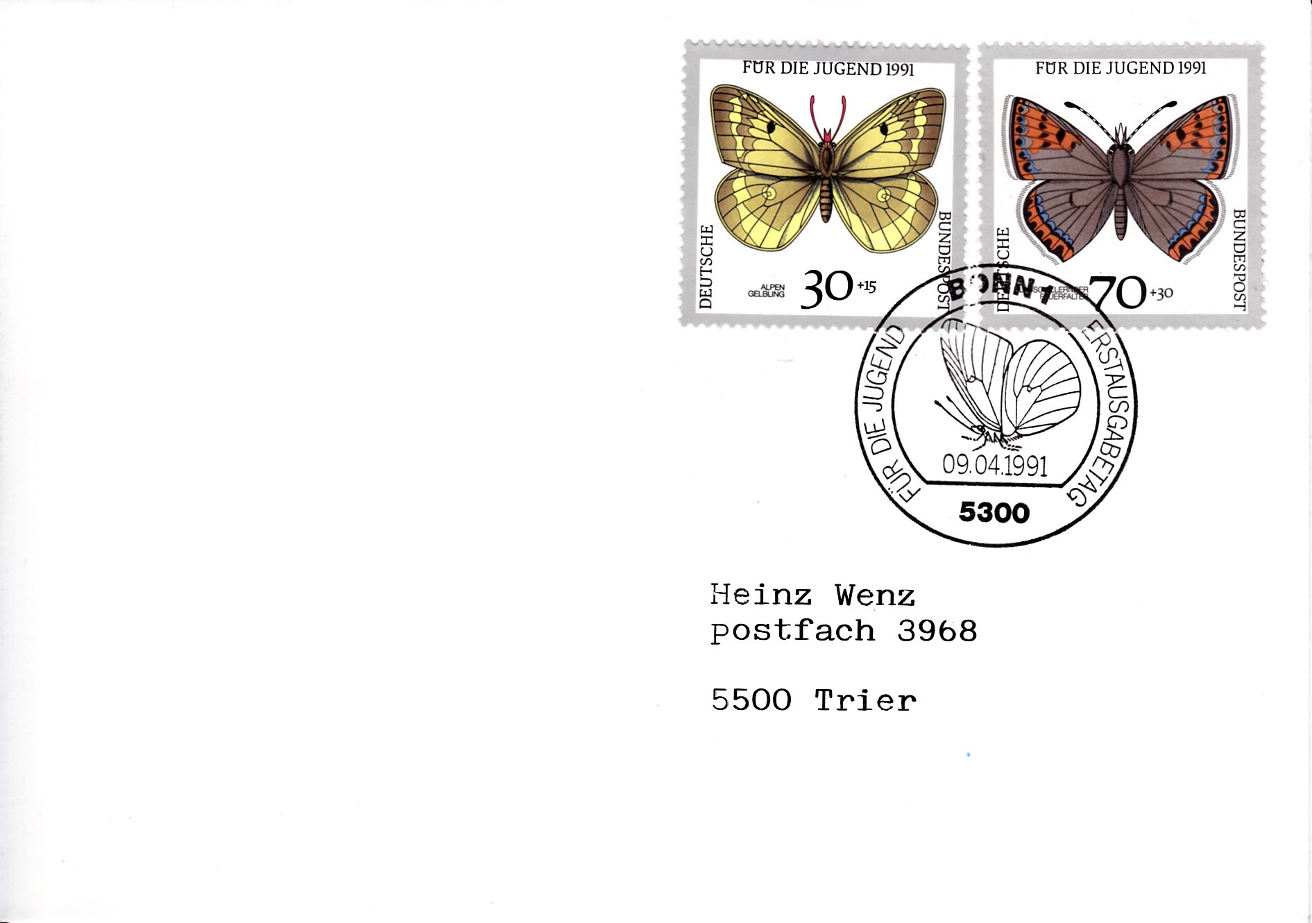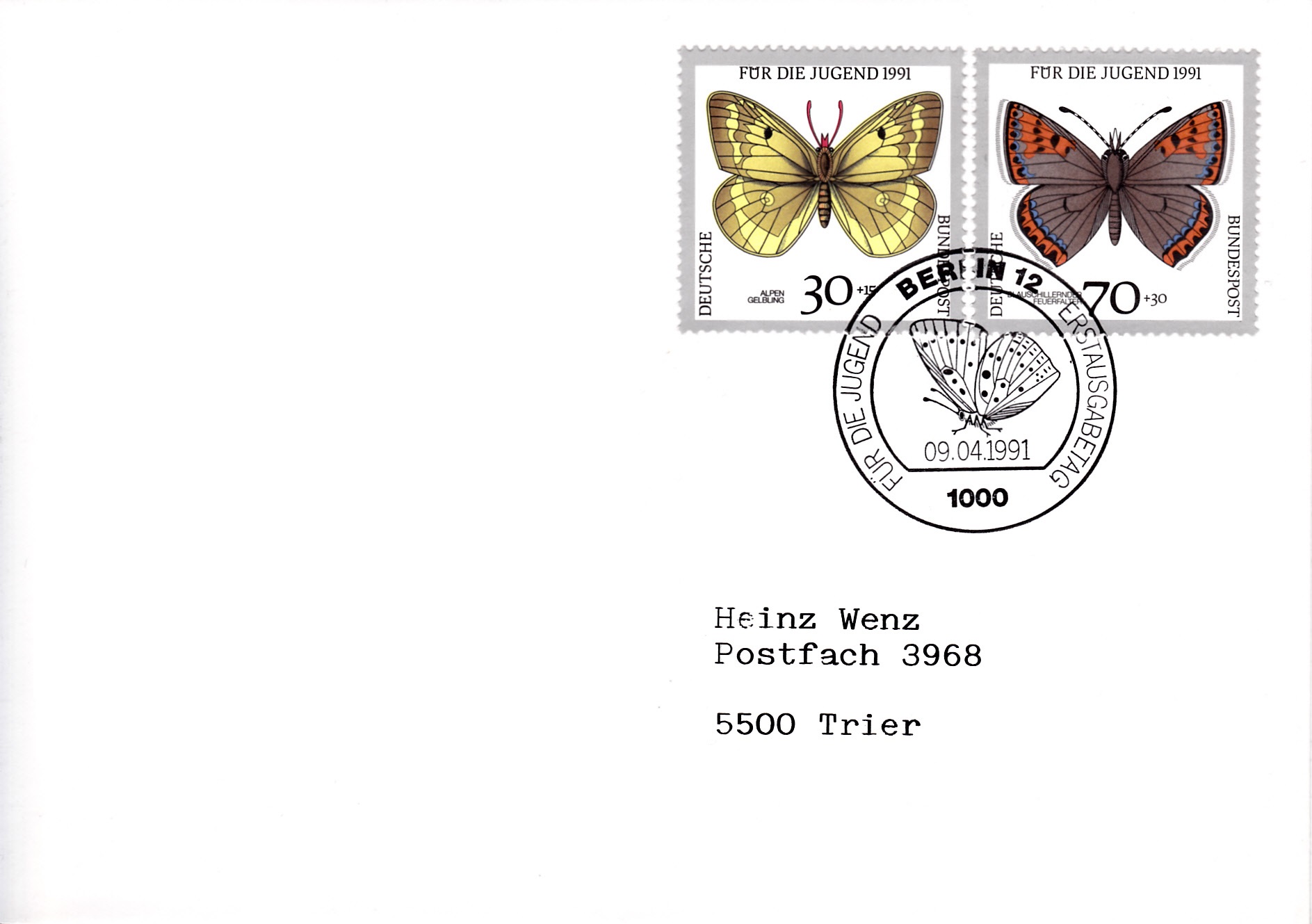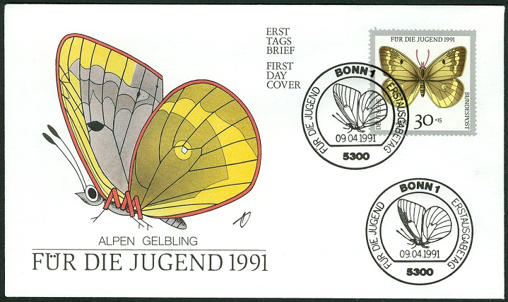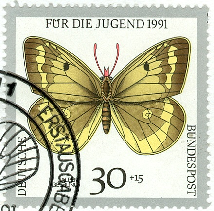 Am 9. April 1991 brachte die Deutsche Bundespost eine 8wertige Ausgabe Jugendmarken an die Schalter. Diese Zuschlagsmarken zeigen "Gefährdete Schmetterlinge".