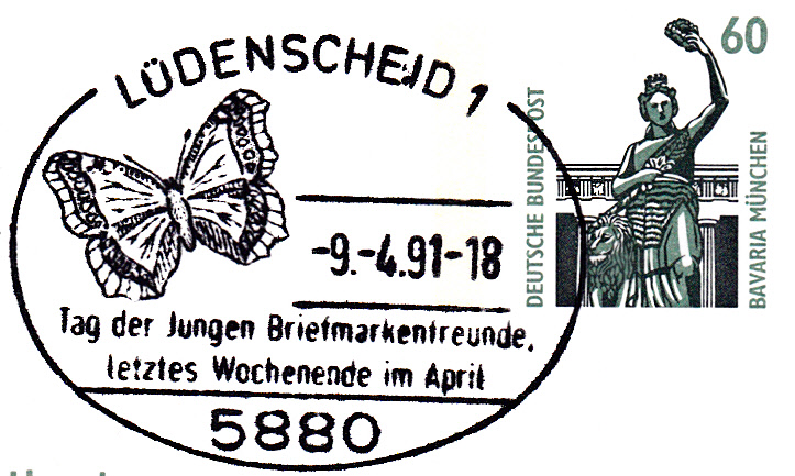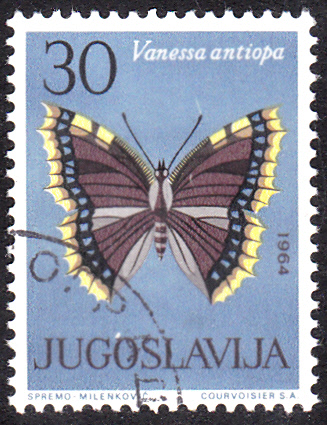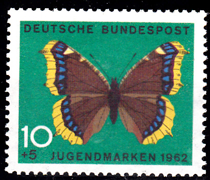 Diese Marke aus einer bulgarischen Serie (MiNr 1342) zeigt einen Trauermantel (Nymphalis antiopa).