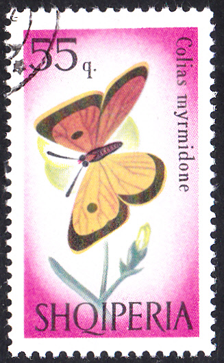 Diese Marke aus Bulgarien (MiNr 1345) bildet laut Michel einen Orangerote Heufalter (Colias myrmidone) ab. Es gibt in Bulgarien offenbar eine Unterart mit der Bezeichnung Colias balcanica oder er wird dort so benannt.