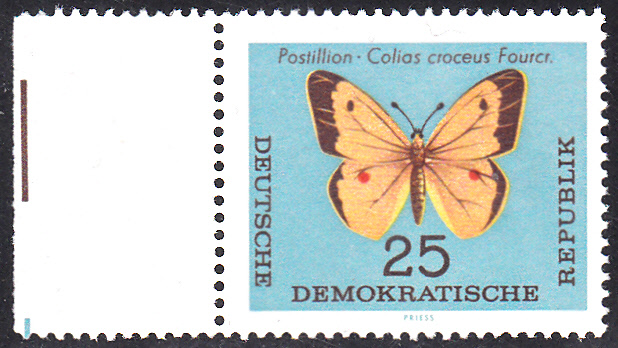Auf dieser Marke aus der DDR ist ein Postillion (Colias croceus) zu sehen.