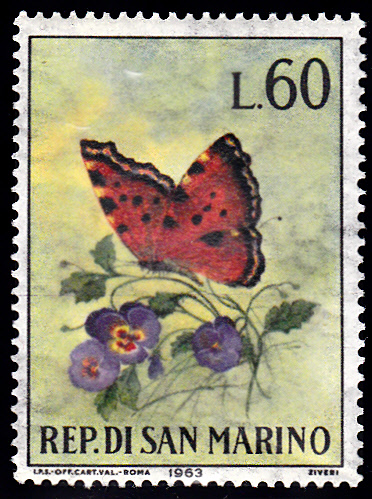 Hier zeige ich eine Marke aus der DDR mit einem Großen Fuchs (Nymphalis polychloros).