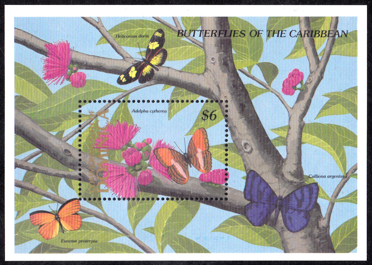 Eine Marke (MiNr 1221) aus einem Block (MiNr Block 161) aus Dominica zeigt einen Adelpha cytherea.