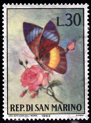Hier eine Marke aus San Marino mit einem Nessaea obrinus.